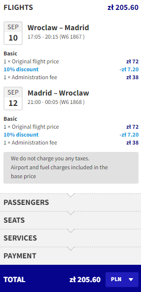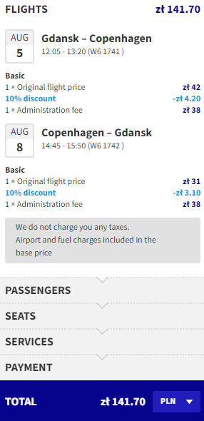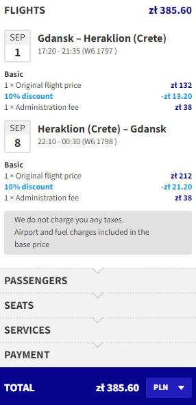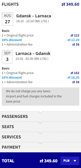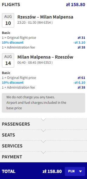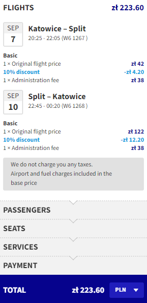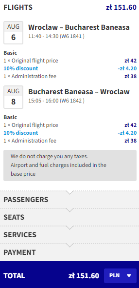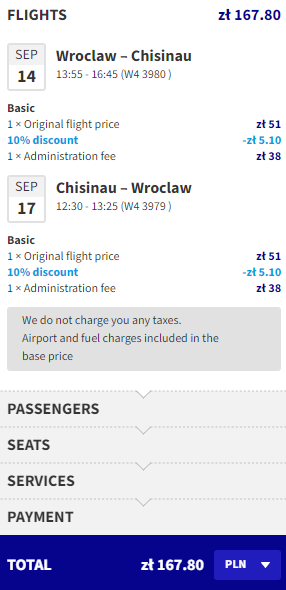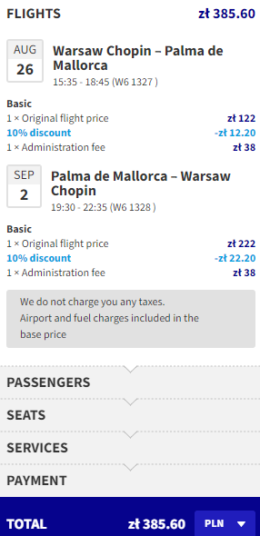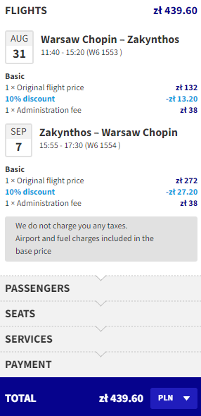 Czas trwania oferty: 03/07/2025 00:00 – 03/07/2025 23:59 CEST czasu środkowoeuropejskiego letniego (“Czas trwania oferty”). Oferta dotyczy ceny biletów, ale nie obejmuje opłaty administracyjnej. Oferta obowiązuje tylko na wybrane loty dostępne na stronie https://wizzair.com i w aplikacji mobilnej WIZZ w okresie trwania oferty. Czas podróży jest ograniczony do okresu: 10/07/2025 ? 30/09/2025. Oferta dotyczy wyłącznie rezerwacji dokonanych na stronie https://wizzair.com lub w aplikacji mobilnej WIZZ. Oferta nie ma zastosowania do rezerwacji grupowych. Wyłączone loty do/z: Tel Awiwu
