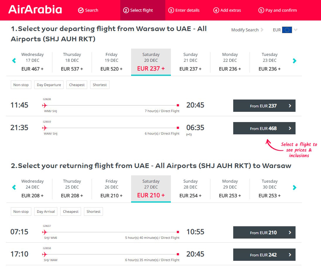 Obecnie loty na trasie Warszawa Modlin – Szardża zaplanowano od 20 grudnia 2025. Loty mają odbywać się codziennie, a obsługiwać je będzie Airbus A320neo. Jednocześnie mają być realizowane loty z Lotniska Chopina.