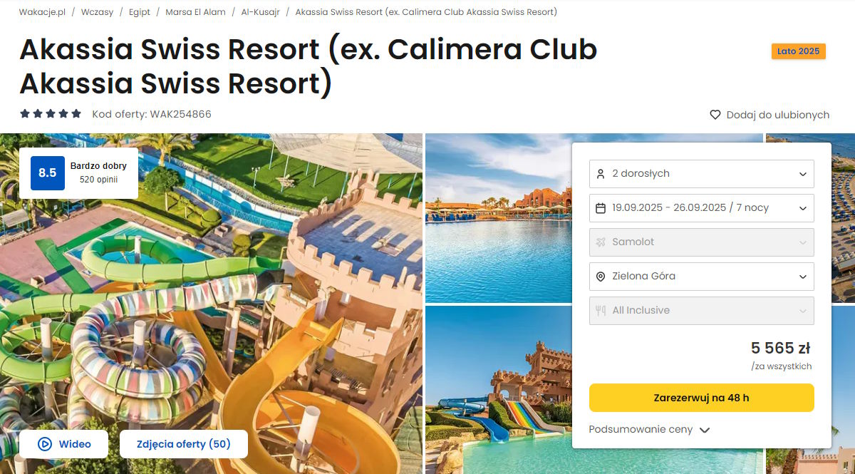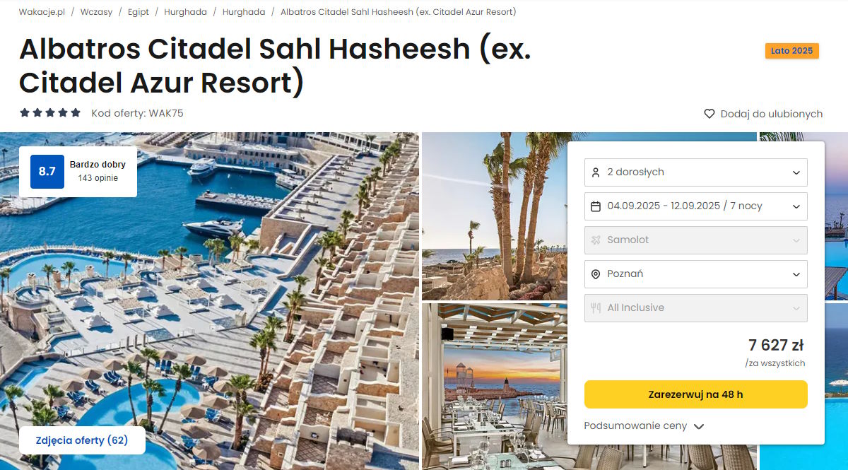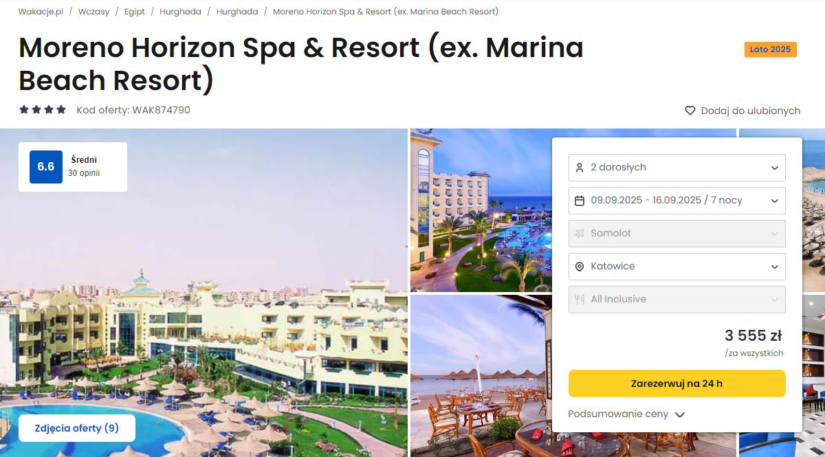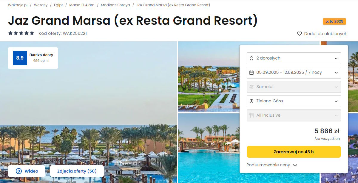 Współpracujemy z serwisem wakacje.pl i dzięki temu mogliśmy zaprezentować w/w ofertę. Treści pochodzą z serwisu wakacje.pl. Stanowią własność prawnie chronioną należącą do Wakacje.pl S.A. i/lub jej partnerów
