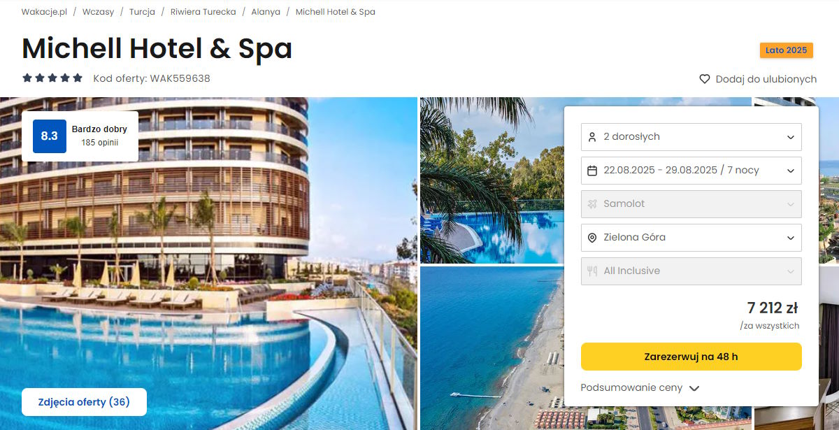 Współpracujemy z serwisem wakacje.pl i dzięki temu mogliśmy zaprezentować w/w ofertę. Treści pochodzą z serwisu wakacje.pl. Stanowią własność prawnie chronioną należącą do Wakacje.pl S.A. i/lub jej partnerów