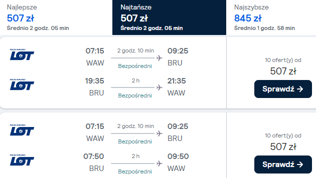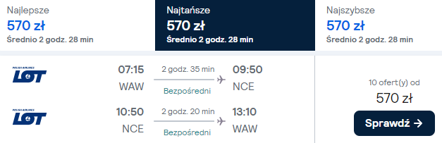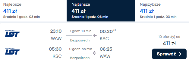 Dostępne są też loty z innych polskich lotnisk (z przesiadką w Warszawie) w niewiele wyższej (bądź nawet tej samej!) cenie – warto skorzystać!