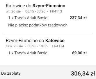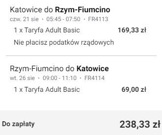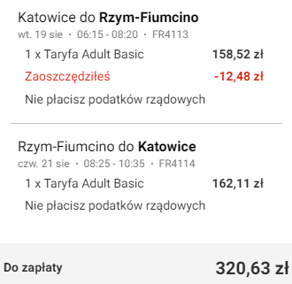 Katowice (KTW) – Rzym Fiumicino (FCO) ~130 PLN RT: