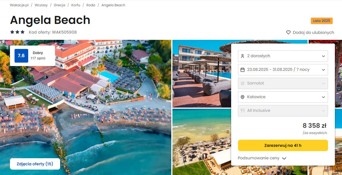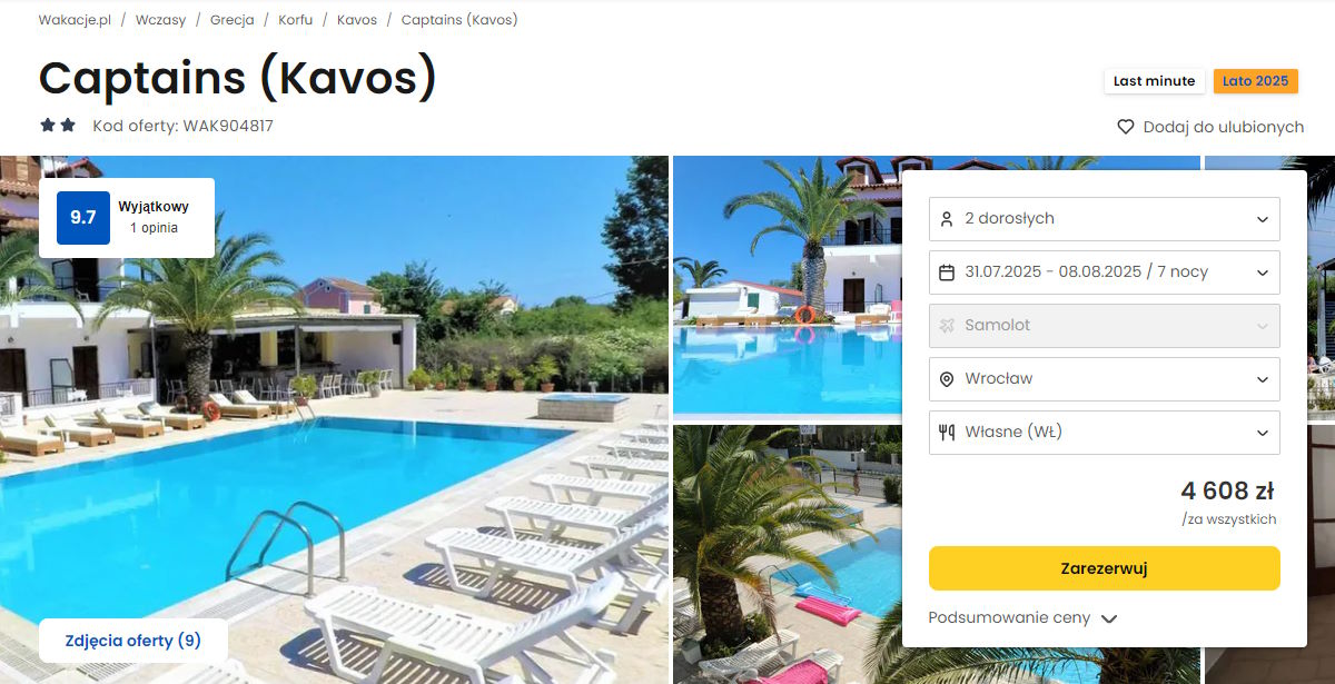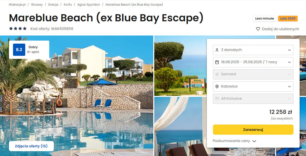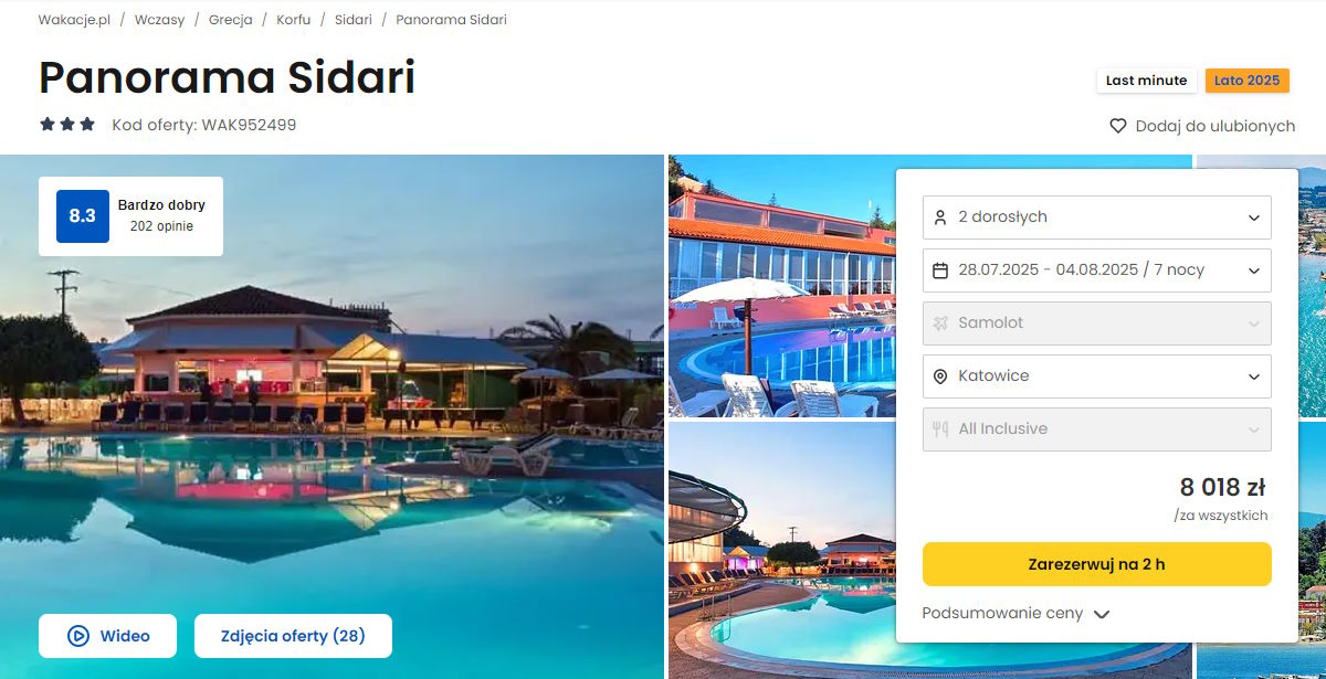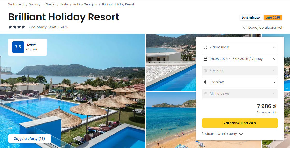 Współpracujemy z serwisem wakacje.pl i dzięki temu mogliśmy zaprezentować w/w ofertę. Treści pochodzą z serwisu wakacje.pl. Stanowią własność prawnie chronioną należącą do Wakacje.pl S.A. i/lub jej partnerów