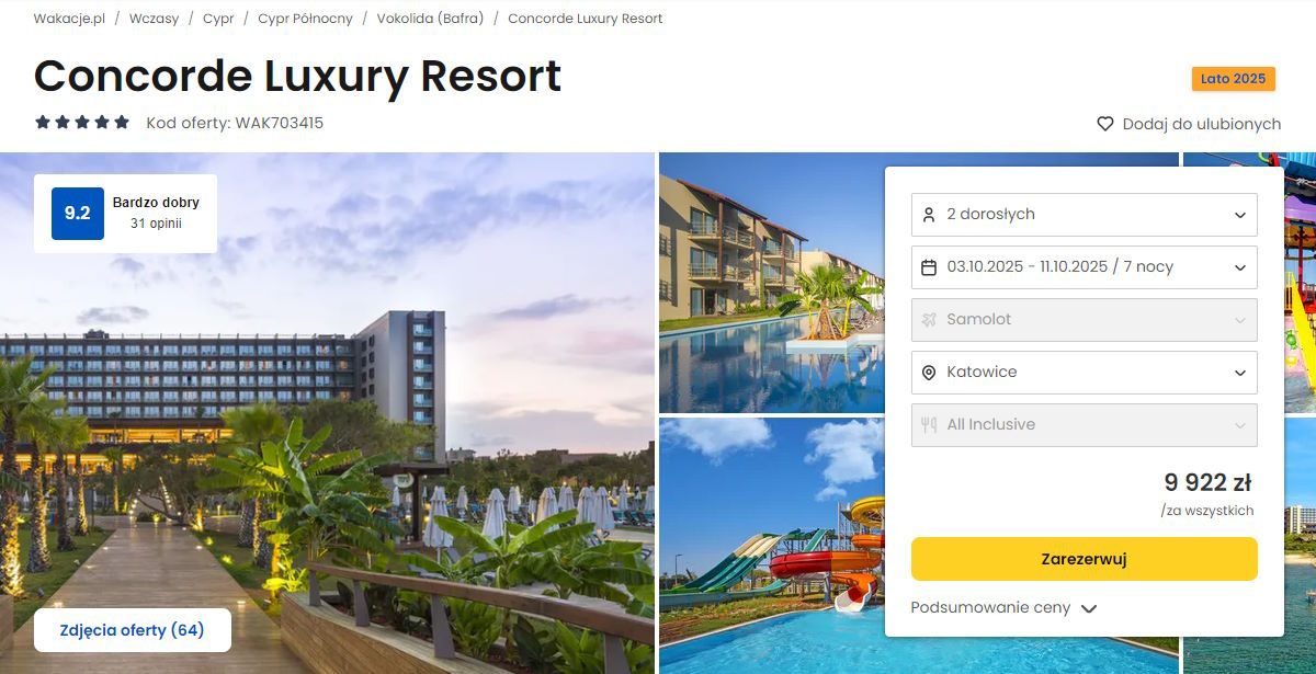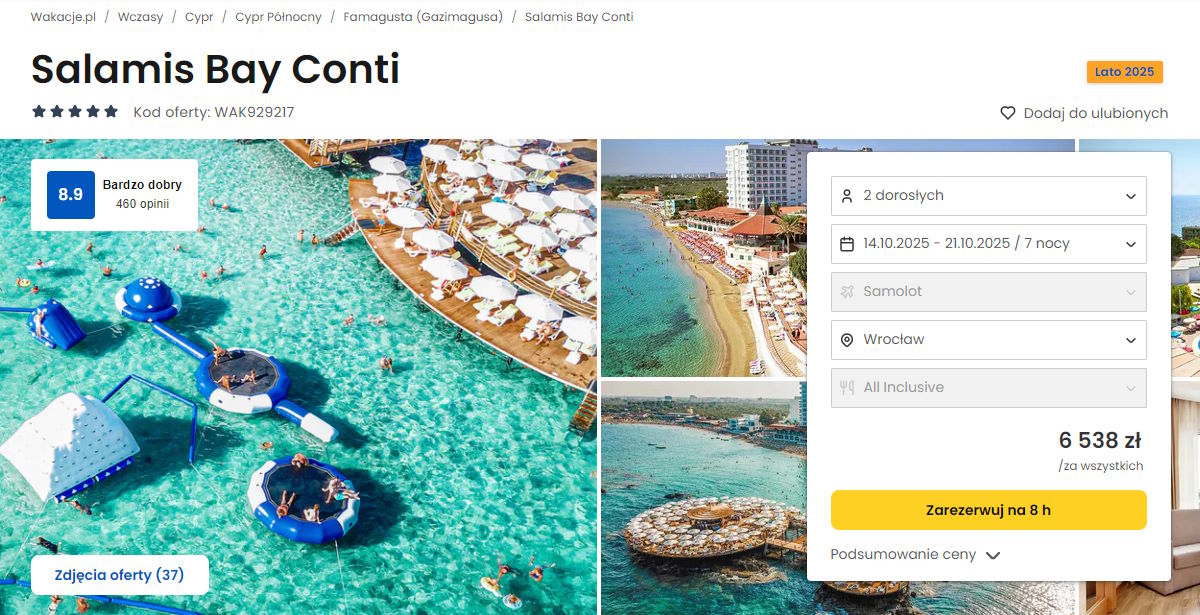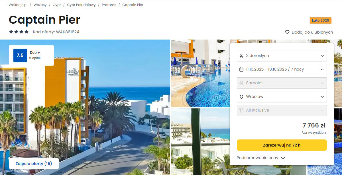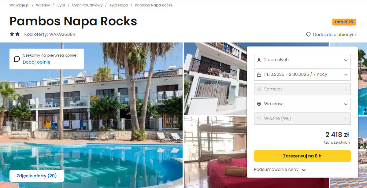 Współpracujemy z serwisem wakacje.pl i dzięki temu mogliśmy zaprezentować w/w ofertę. Treści pochodzą z serwisu wakacje.pl. Stanowią własność prawnie chronioną należącą do Wakacje.pl S.A. i/lub jej partnerów