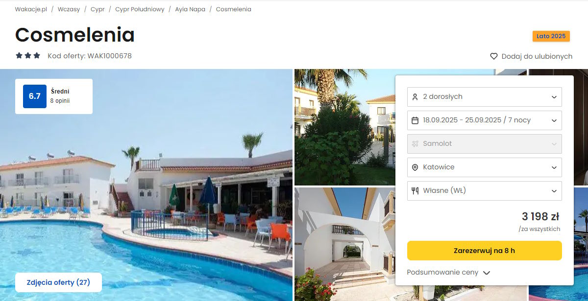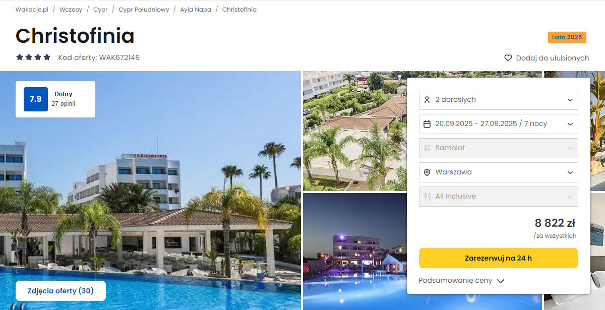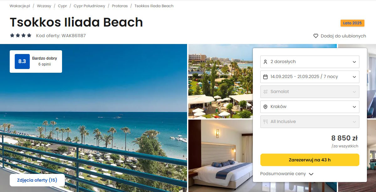 Współpracujemy z serwisem wakacje.pl i dzięki temu mogliśmy zaprezentować w/w ofertę. Treści pochodzą z serwisu wakacje.pl. Stanowią własność prawnie chronioną należącą do Wakacje.pl S.A. i/lub jej partnerów