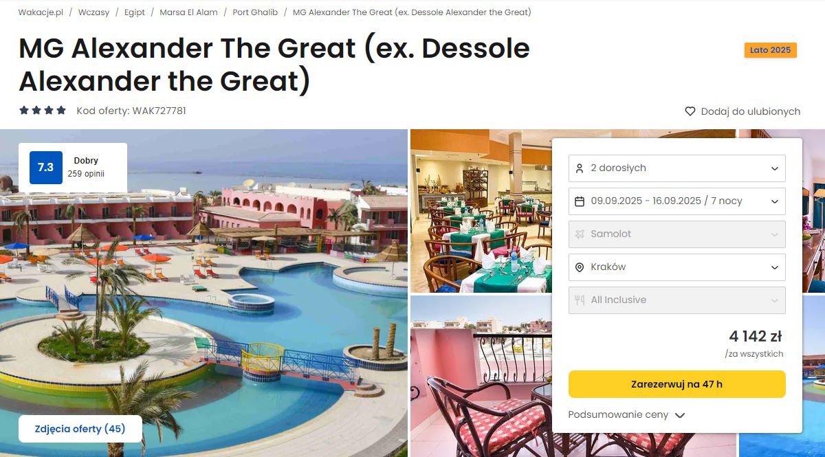 Współpracujemy z serwisem wakacje.pl i dzięki temu mogliśmy zaprezentować w/w ofertę. Treści pochodzą z serwisu wakacje.pl. Stanowią własność prawnie chronioną należącą do Wakacje.pl S.A. i/lub jej partnerów