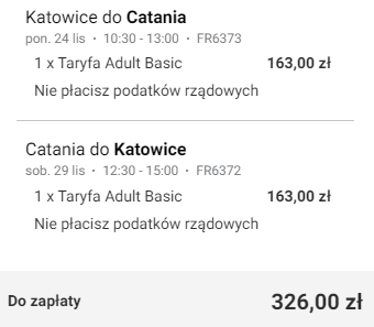 Katowice (KTW) – Katania (CTA) od ~326 PLN RT