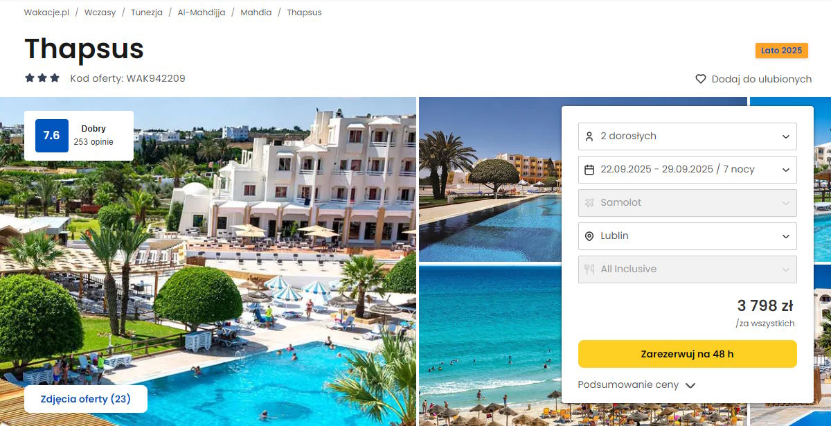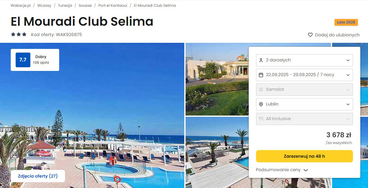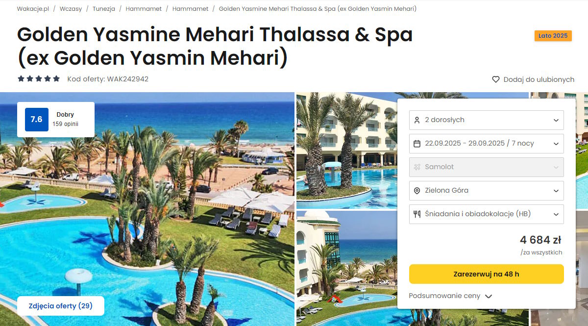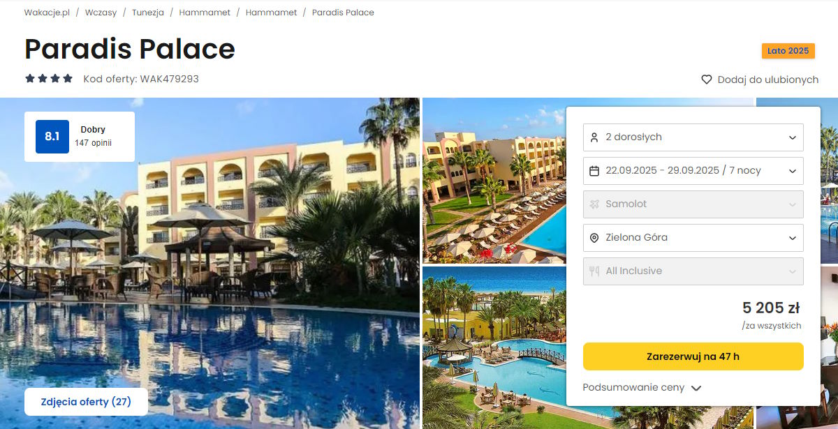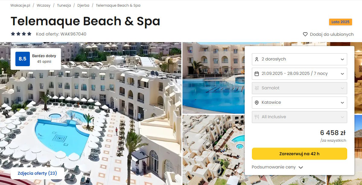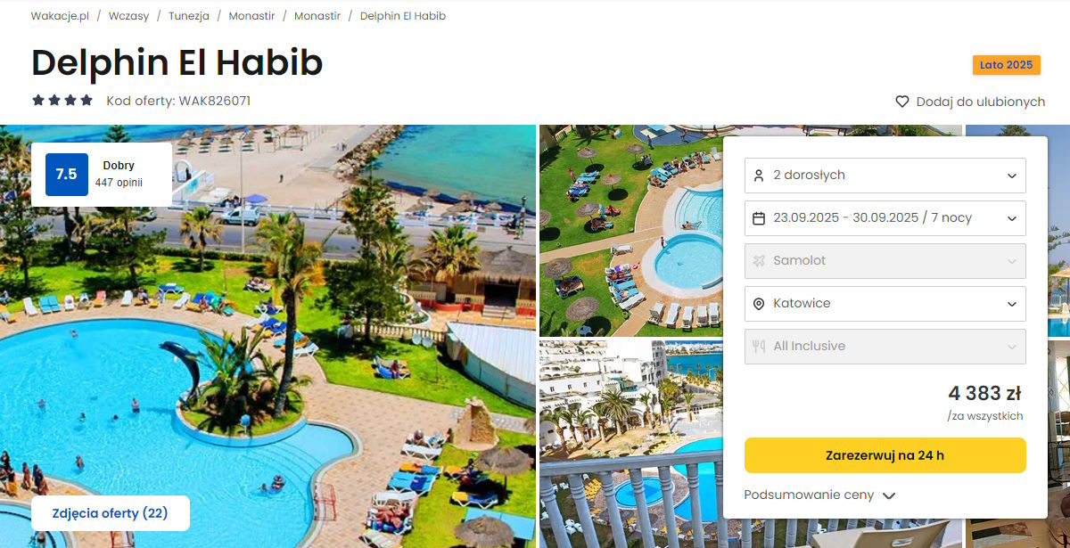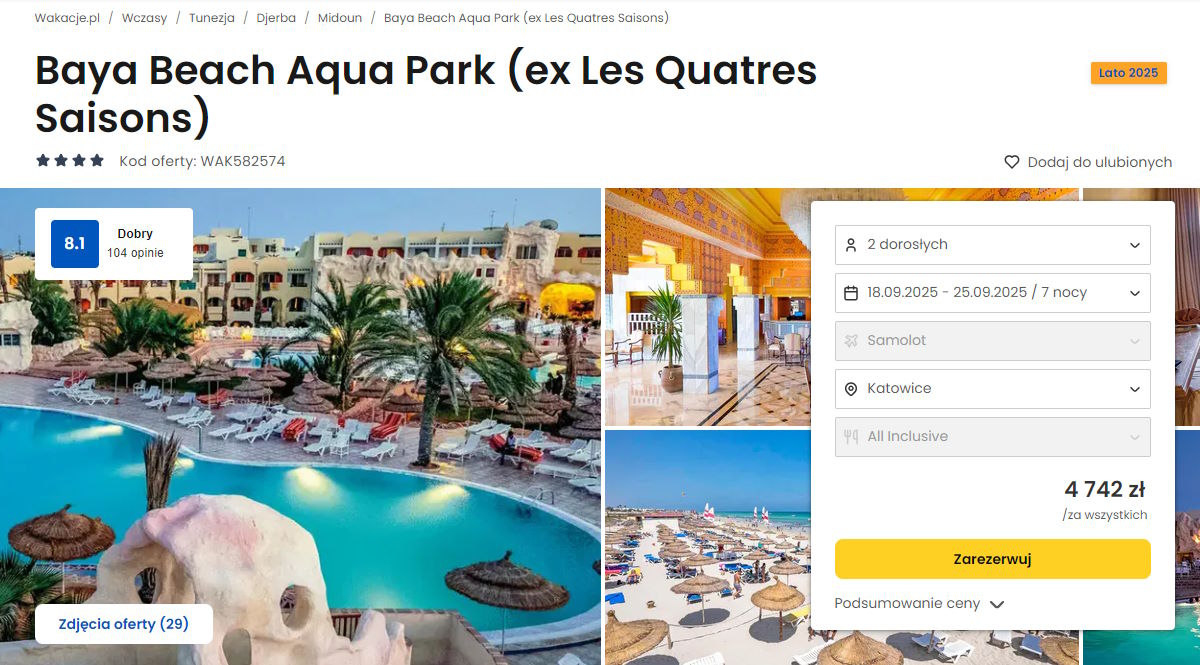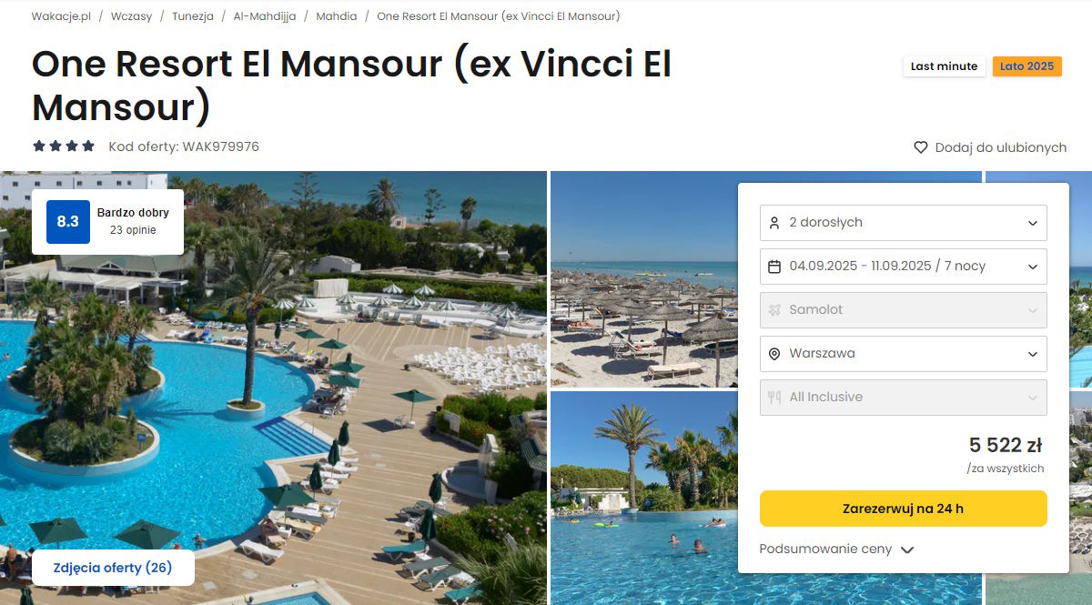 Współpracujemy z serwisem wakacje.pl i dzięki temu mogliśmy zaprezentować w/w ofertę. Treści pochodzą z serwisu wakacje.pl. Stanowią własność prawnie chronioną należącą do Wakacje.pl S.A. i/lub jej partnerów