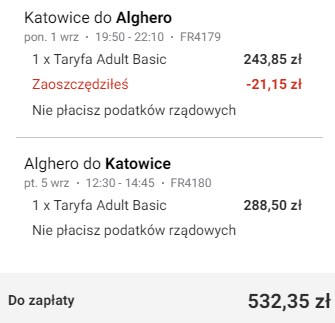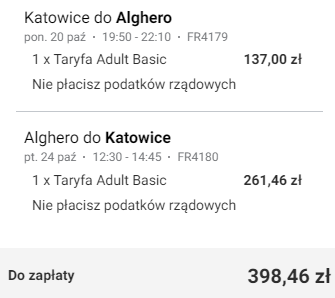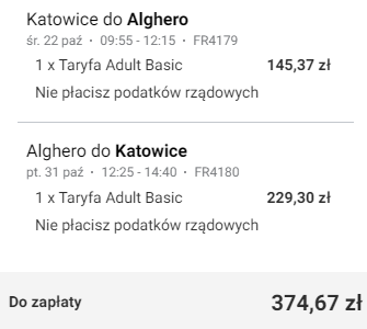 Katowice (KTW) – Alghero (AHO) od ~375 PLN RT