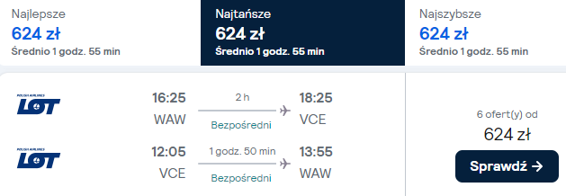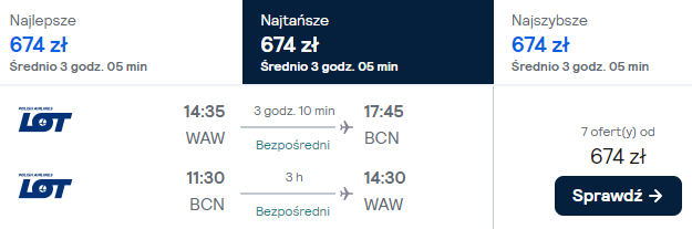 Dostępne są też loty z innych polskich lotnisk (z przesiadką w Warszawie) w niewiele wyższej (bądź nawet tej samej!) cenie – warto skorzystać!