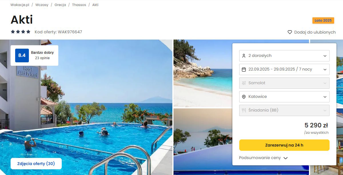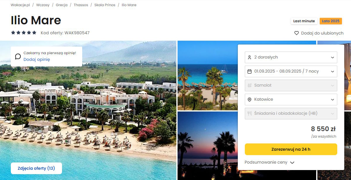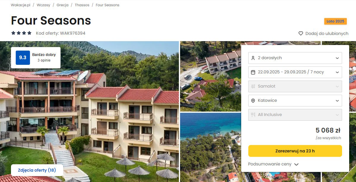 Współpracujemy z serwisem wakacje.pl i dzięki temu mogliśmy zaprezentować w/w ofertę. Treści pochodzą z serwisu wakacje.pl. Stanowią własność prawnie chronioną należącą do Wakacje.pl S.A. i/lub jej partnerów