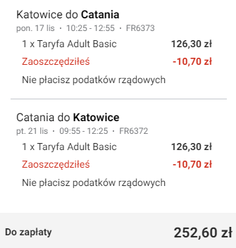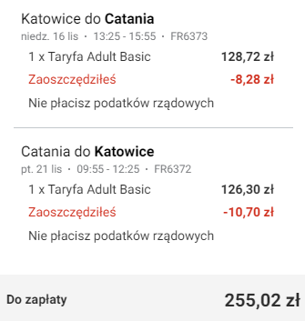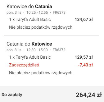 Katowice (KTW) – Katania (CTA) od ~326 PLN RT