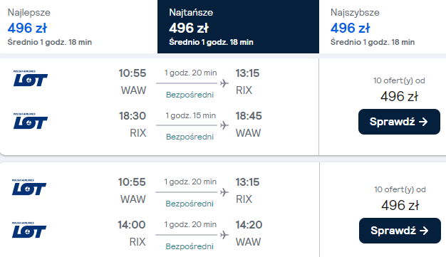 Dostępne są też loty z innych polskich lotnisk (z przesiadką w Warszawie) w niewiele wyższej (bądź nawet tej samej!) cenie – warto skorzystać!