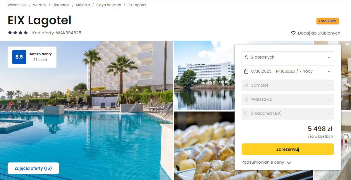 Współpracujemy z serwisem wakacje.pl i dzięki temu mogliśmy zaprezentować w/w ofertę. Treści pochodzą z serwisu wakacje.pl. Stanowią własność prawnie chronioną należącą do Wakacje.pl S.A. i/lub jej partnerów