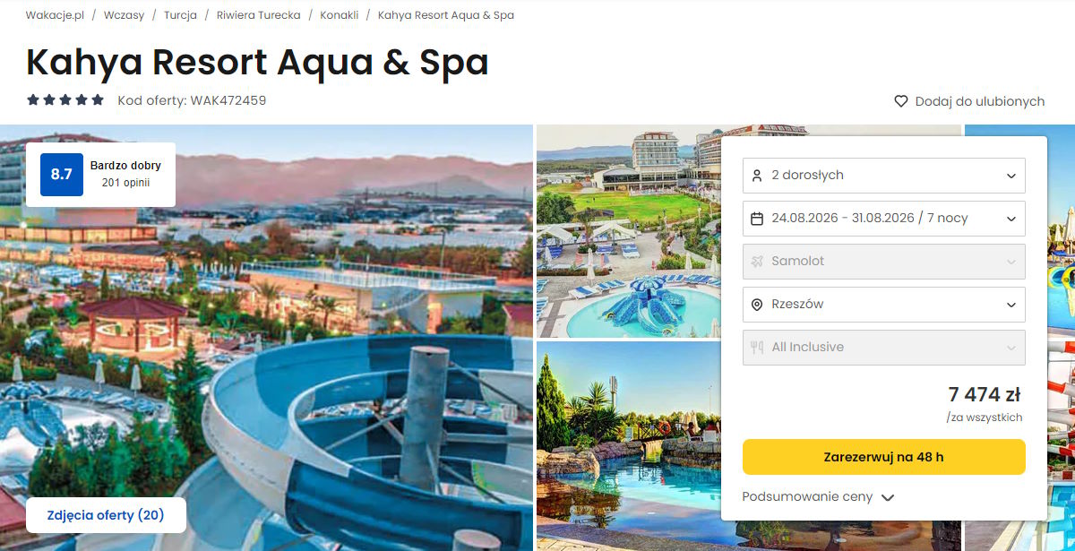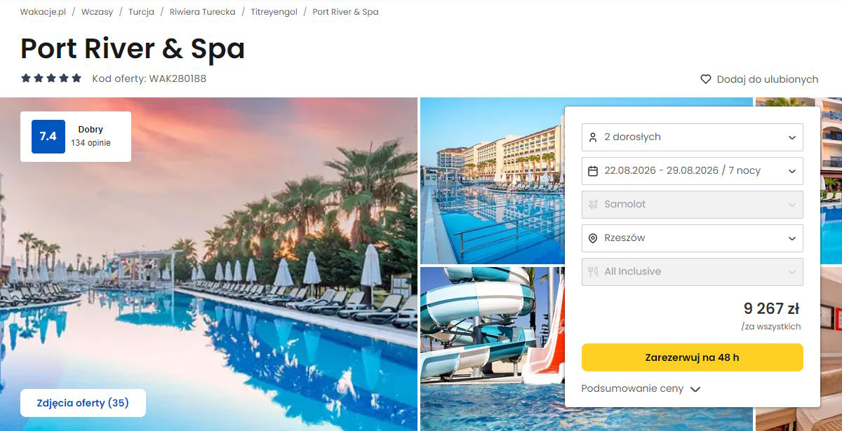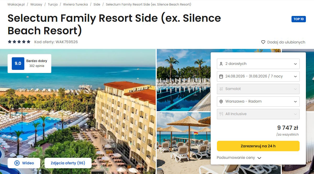 Współpracujemy z serwisem wakacje.pl i dzięki temu mogliśmy zaprezentować w/w ofertę. Treści pochodzą z serwisu wakacje.pl. Stanowią własność prawnie chronioną należącą do Wakacje.pl S.A. i/lub jej partnerów
