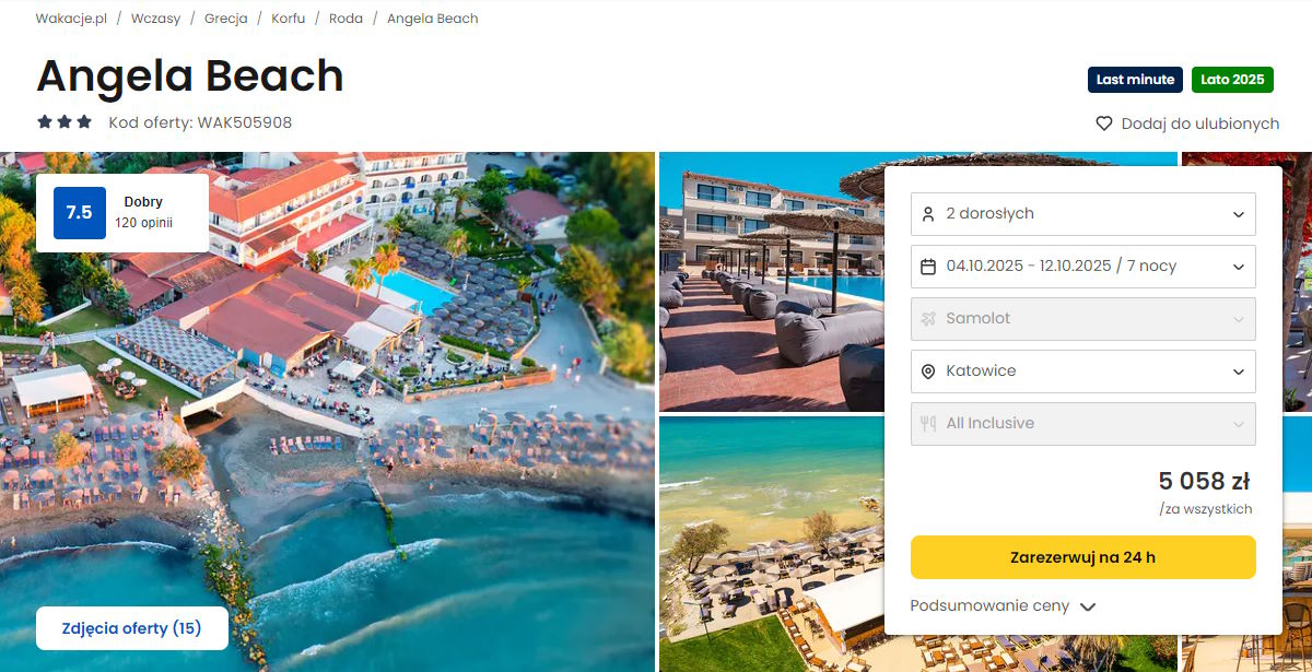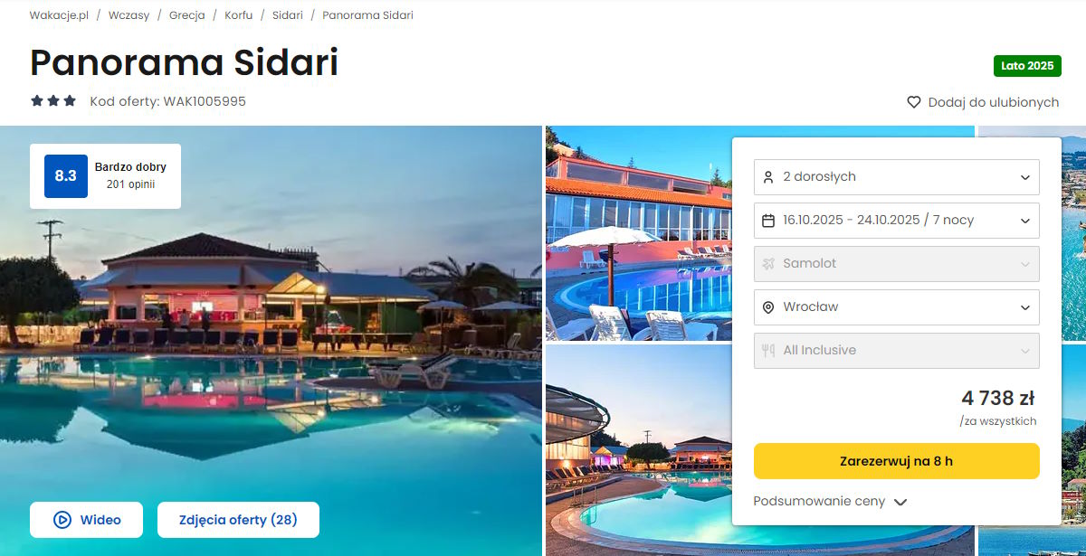 Współpracujemy z serwisem wakacje.pl i dzięki temu mogliśmy zaprezentować w/w ofertę. Treści pochodzą z serwisu wakacje.pl. Stanowią własność prawnie chronioną należącą do Wakacje.pl S.A. i/lub jej partnerów