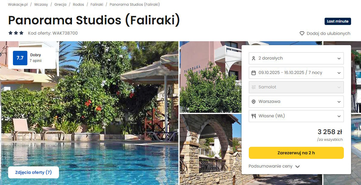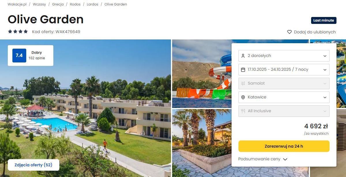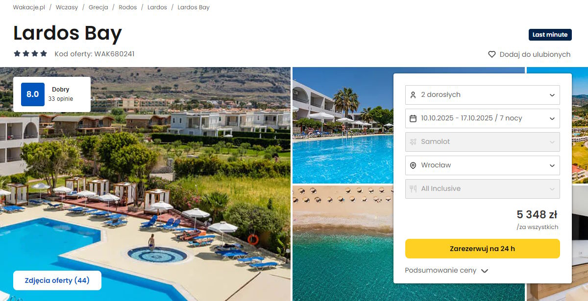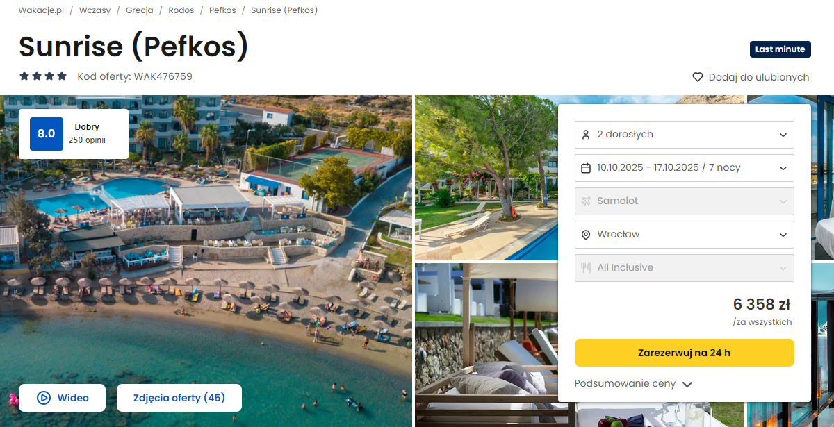 Współpracujemy z serwisem wakacje.pl i dzięki temu mogliśmy zaprezentować w/w ofertę. Treści pochodzą z serwisu wakacje.pl. Stanowią własność prawnie chronioną należącą do Wakacje.pl S.A. i/lub jej partnerów