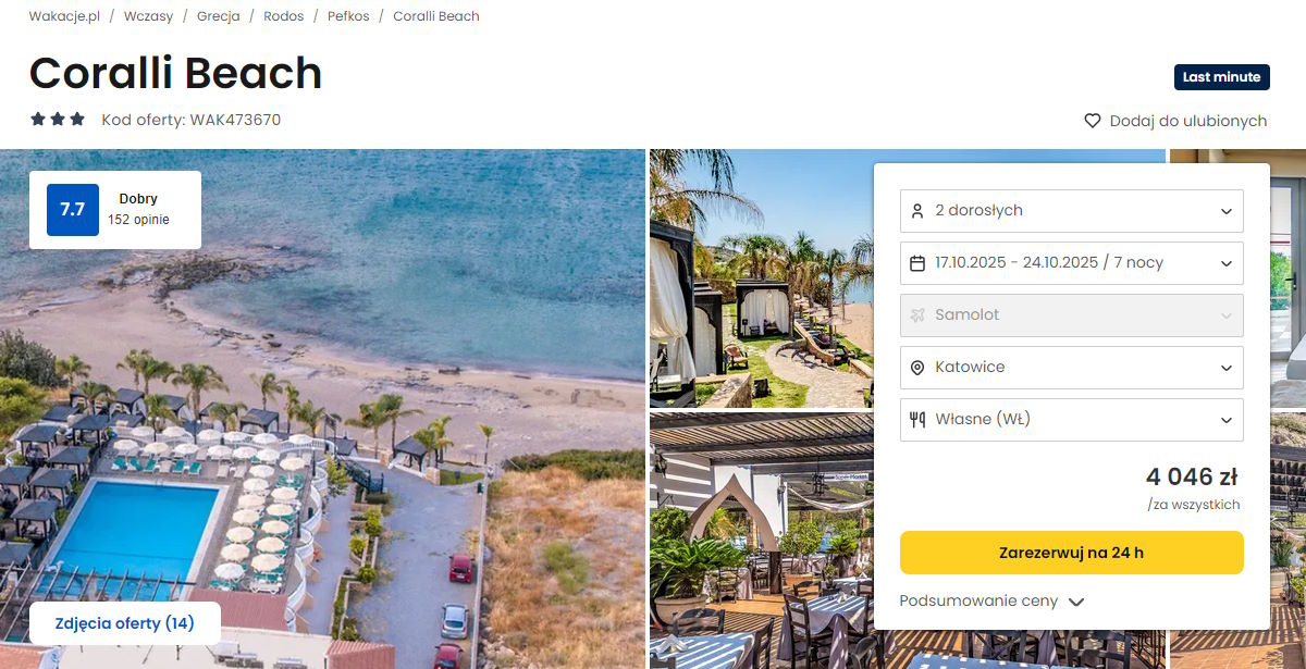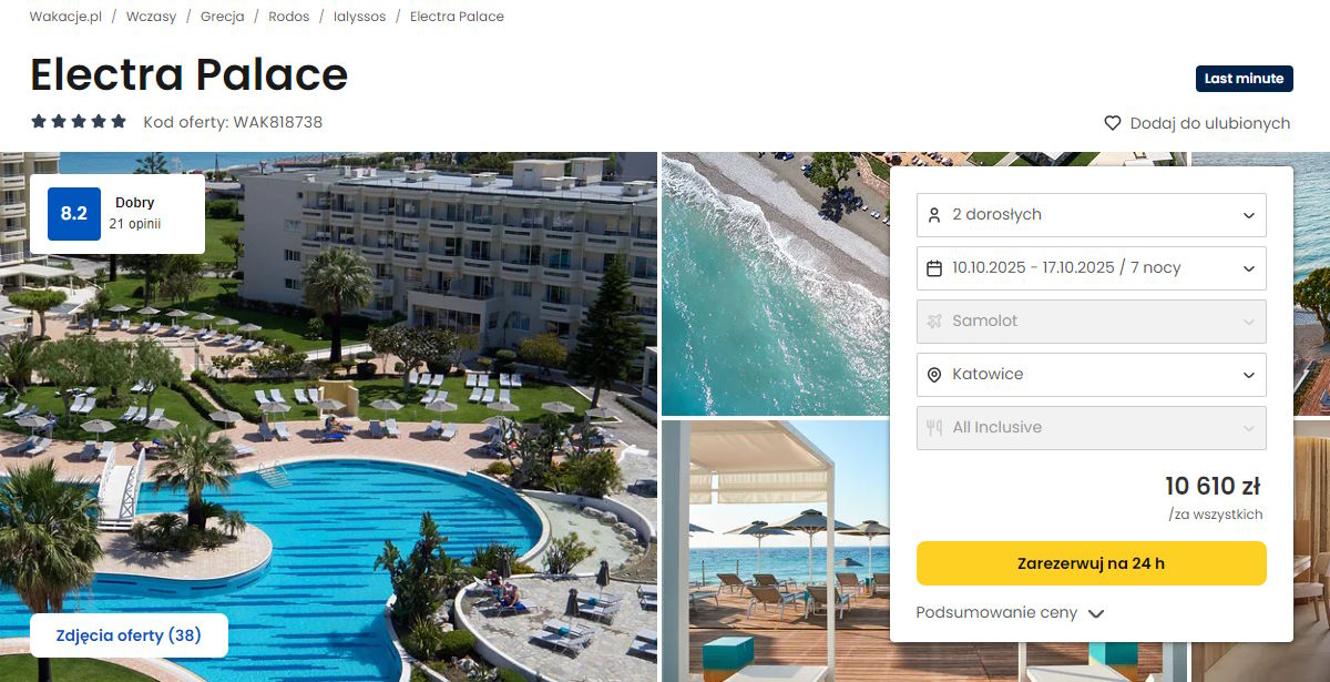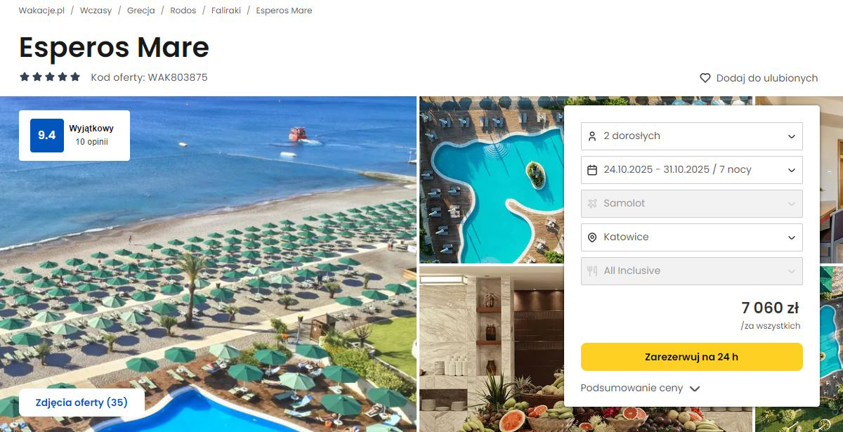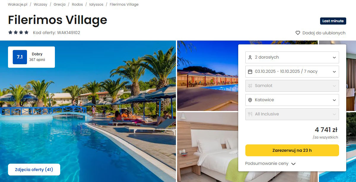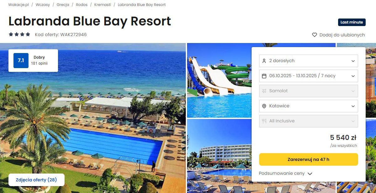 Współpracujemy z serwisem wakacje.pl i dzięki temu mogliśmy zaprezentować w/w ofertę. Treści pochodzą z serwisu wakacje.pl. Stanowią własność prawnie chronioną należącą do Wakacje.pl S.A. i/lub jej partnerów