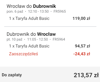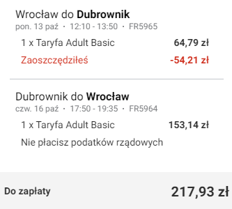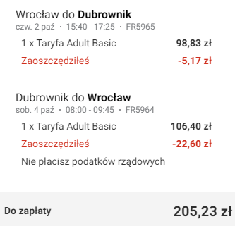 Wrocław (WRO) – Dubrownik (DBV) od ~205 PLN RT: