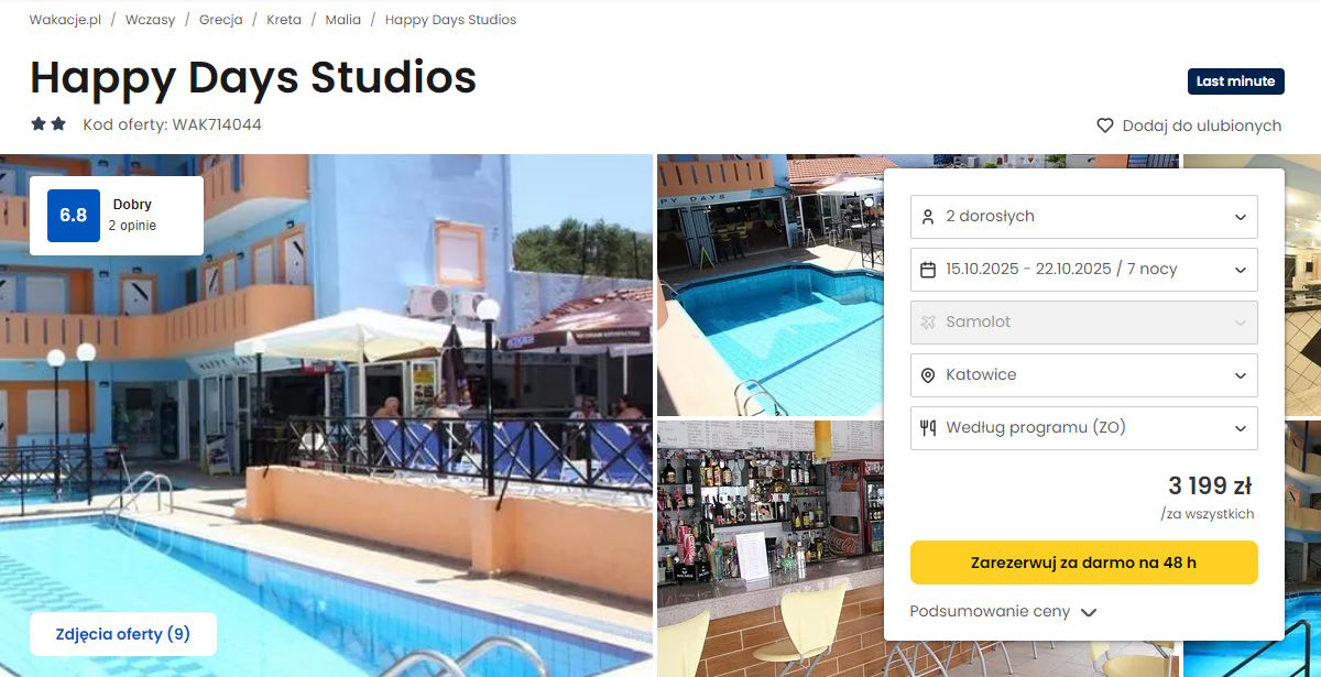 Współpracujemy z serwisem wakacje.pl i dzięki temu mogliśmy zaprezentować w/w ofertę. Treści pochodzą z serwisu wakacje.pl. Stanowią własność prawnie chronioną należącą do Wakacje.pl S.A. i/lub jej partnerów
