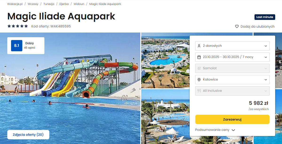 Współpracujemy z serwisem wakacje.pl i dzięki temu mogliśmy zaprezentować w/w ofertę. Treści pochodzą z serwisu wakacje.pl. Stanowią własność prawnie chronioną należącą do Wakacje.pl S.A. i/lub jej partnerów