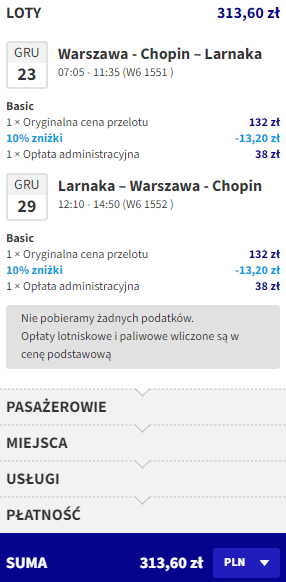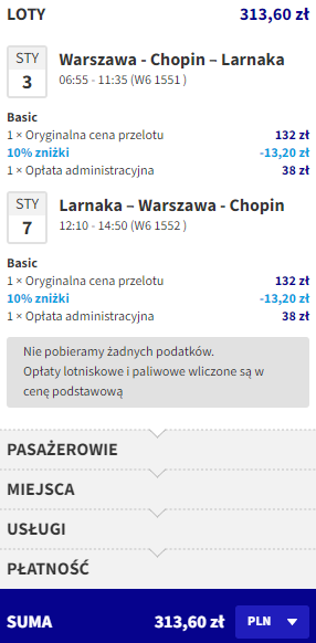 Warszawa (WAW) – Larnaka (LCA) od ~313,50 PLN RT