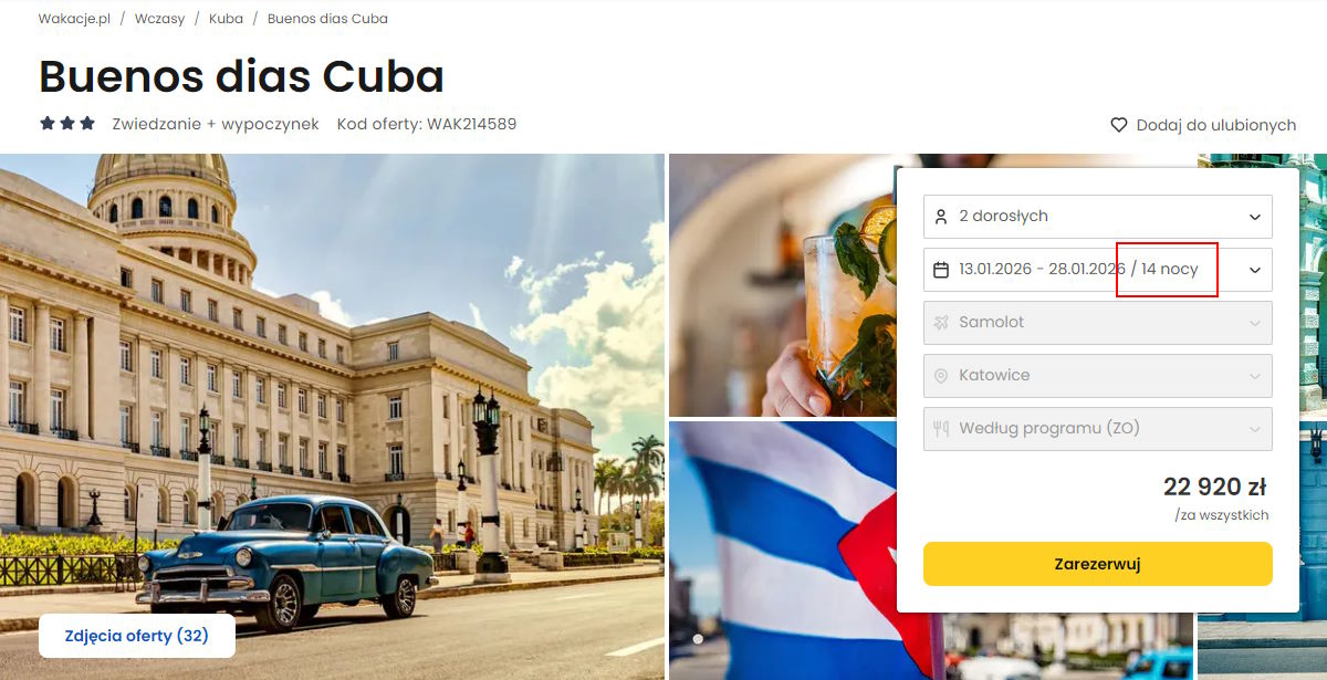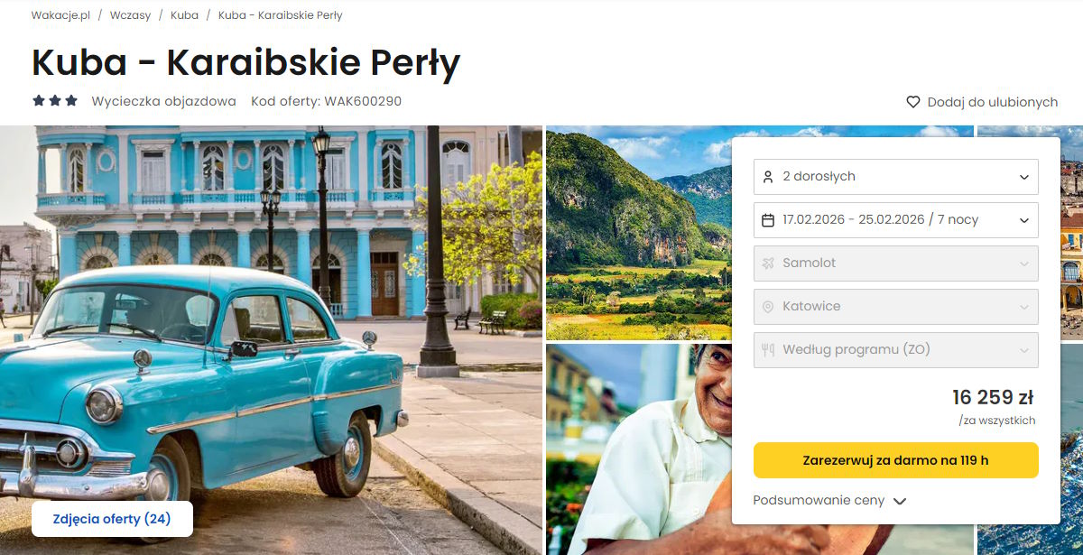 Dzisiaj mam dla Was kilka ofert podróży zorganizowanej (wycieczek). Kierunkiem docelowym jest Kuba – z Polski. Pamiętajcie, że to tylko część propozycji, wszystkie aktualne oferty znajdziecie TUTAJ