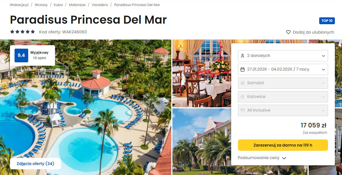 Współpracujemy z serwisem wakacje.pl i dzięki temu mogliśmy zaprezentować w/w ofertę. Treści pochodzą z serwisu wakacje.pl. Stanowią własność prawnie chronioną należącą do Wakacje.pl S.A. i/lub jej partnerów