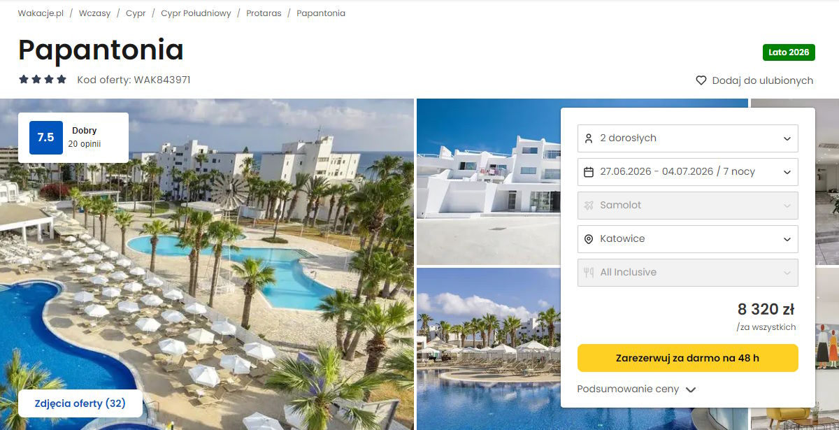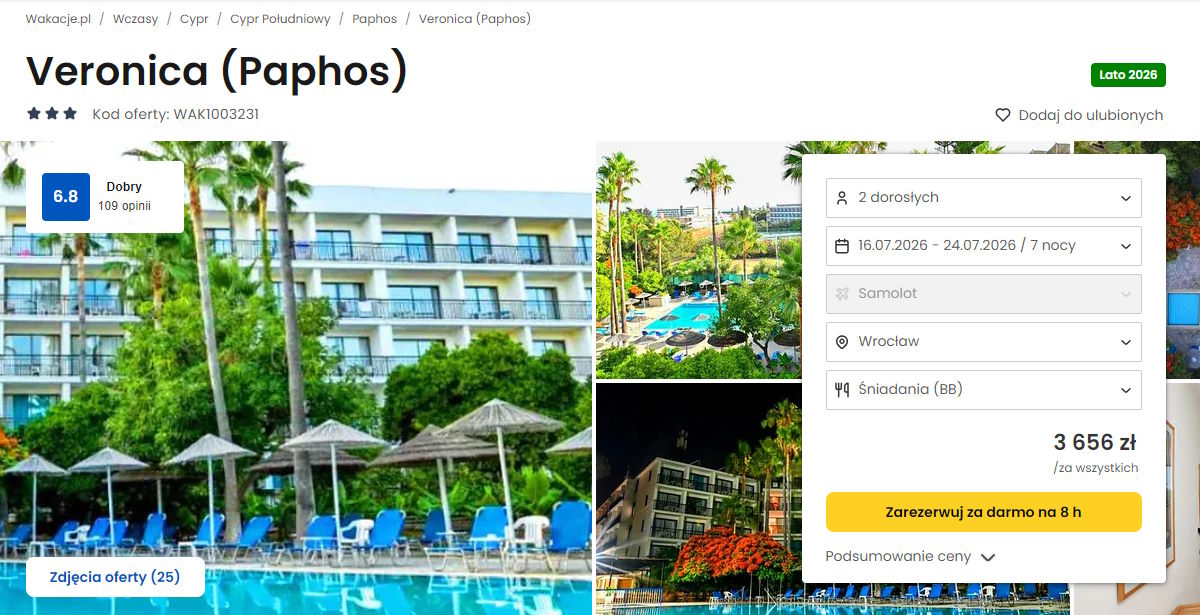 Współpracujemy z serwisem wakacje.pl i dzięki temu mogliśmy zaprezentować w/w ofertę. Treści pochodzą z serwisu wakacje.pl. Stanowią własność prawnie chronioną należącą do Wakacje.pl S.A. i/lub jej partnerów