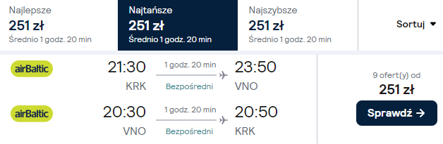 Kraków – Wilno (VNO) od ~250 PLN RT
