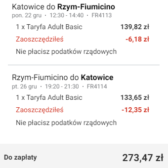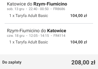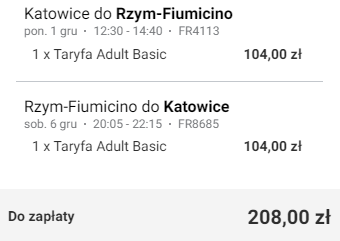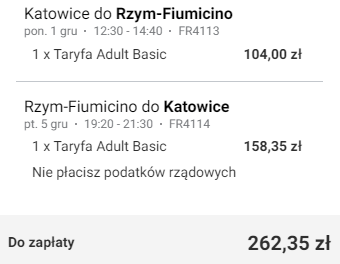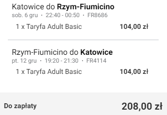 Katowice (KTW) – Rzym Fiumicino (FCO) ~208 PLN RT: