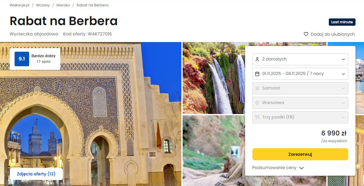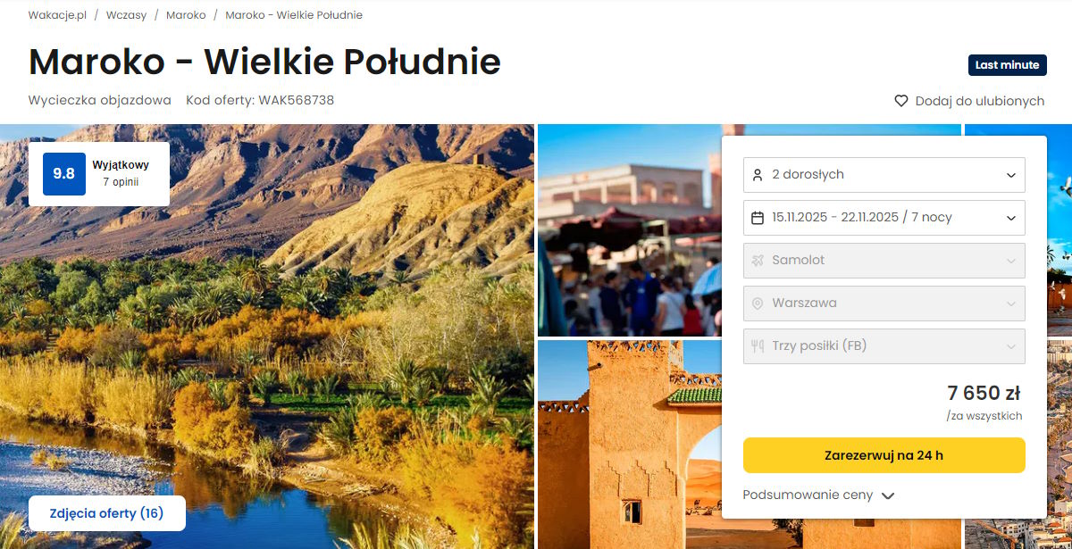 Dzisiaj mam dla Was kilka ofert podróży zorganizowanej (wycieczek). Kierunkiem docelowym jest Maroko – z Polski. Pamiętajcie, że to tylko część propozycji, wszystkie aktualne oferty znajdziecie TUTAJ