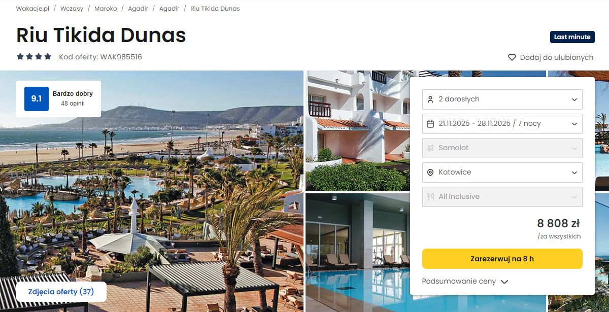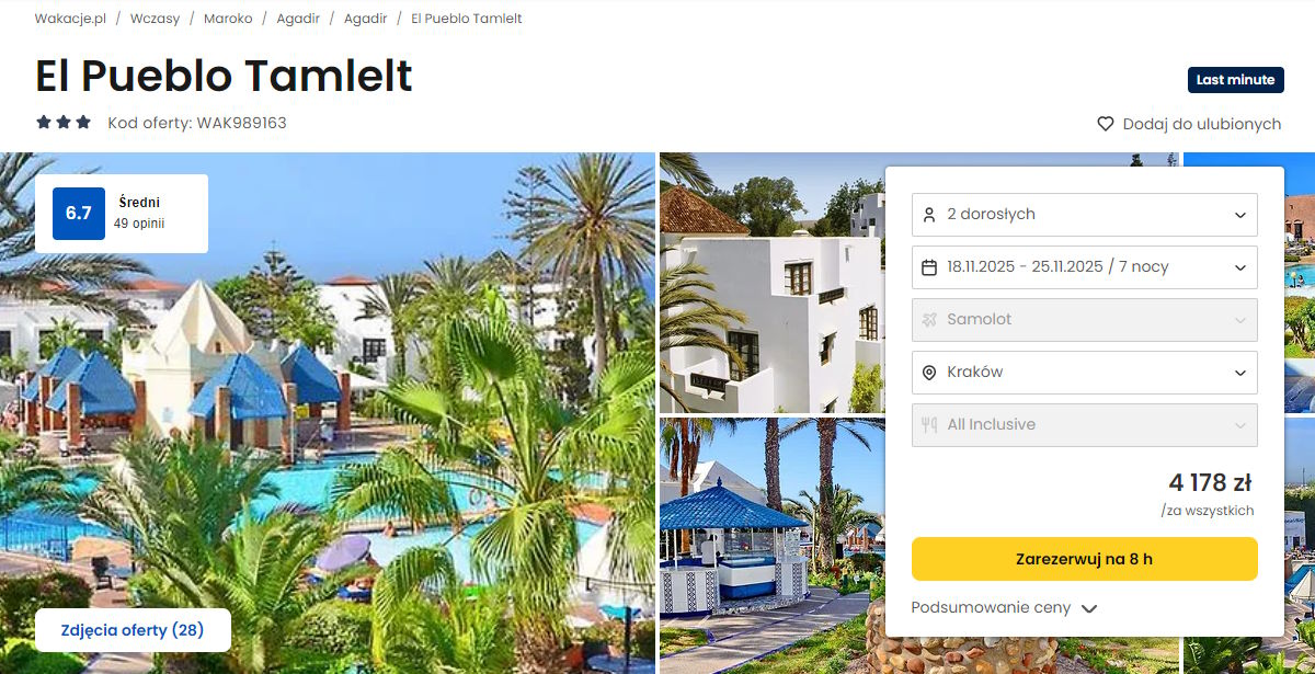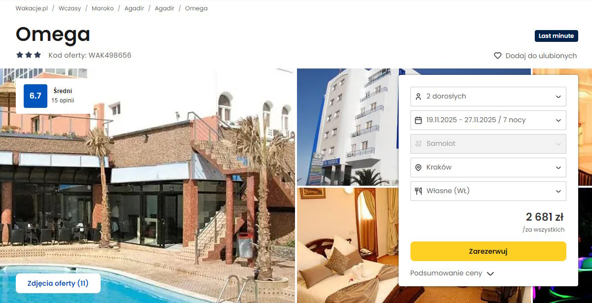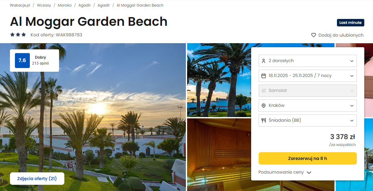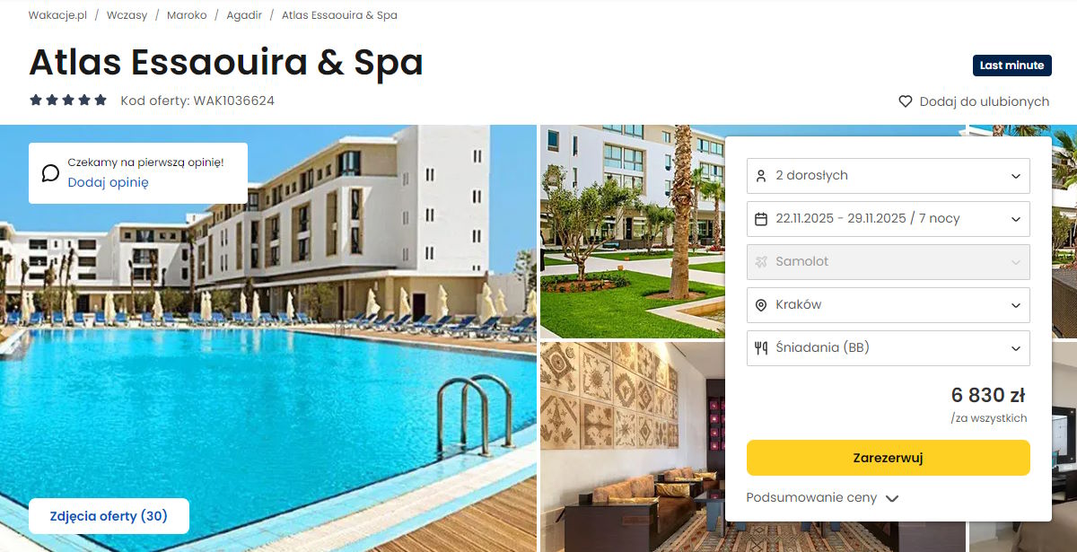 Współpracujemy z serwisem wakacje.pl i dzięki temu mogliśmy zaprezentować w/w ofertę. Treści pochodzą z serwisu wakacje.pl. Stanowią własność prawnie chronioną należącą do Wakacje.pl S.A. i/lub jej partnerów