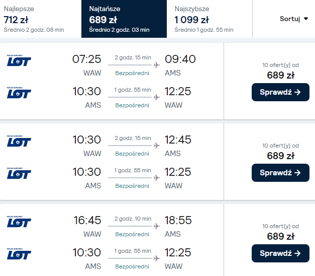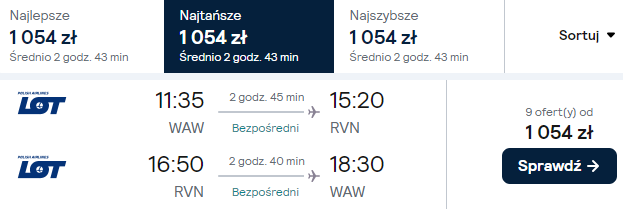 Dostępne są też loty z innych polskich lotnisk (z przesiadką w Warszawie) w niewiele wyższej (bądź nawet tej samej!) cenie – warto skorzystać!