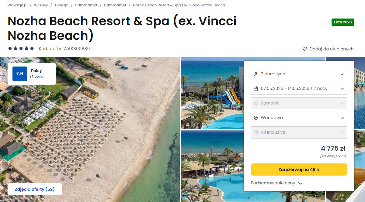 Współpracujemy z serwisem wakacje.pl i dzięki temu mogliśmy zaprezentować w/w ofertę. Treści pochodzą z serwisu wakacje.pl. Stanowią własność prawnie chronioną należącą do Wakacje.pl S.A. i/lub jej partnerów