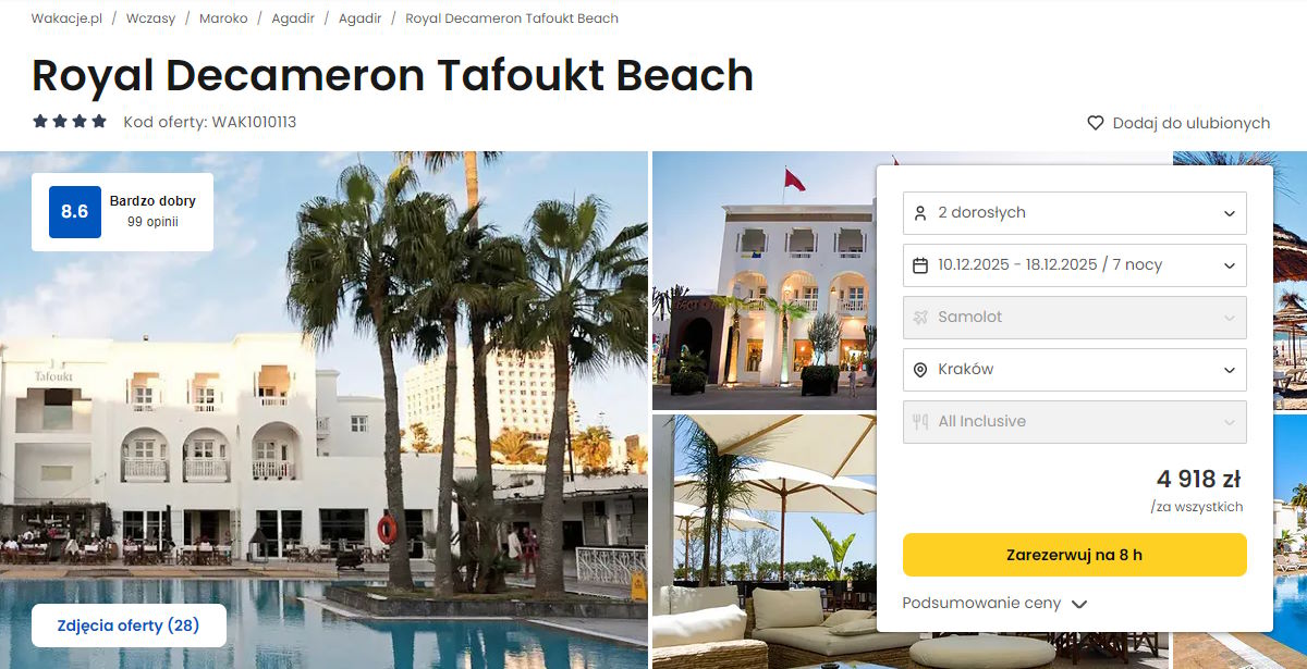 Współpracujemy z serwisem wakacje.pl i dzięki temu mogliśmy zaprezentować w/w ofertę. Treści pochodzą z serwisu wakacje.pl. Stanowią własność prawnie chronioną należącą do Wakacje.pl S.A. i/lub jej partnerów