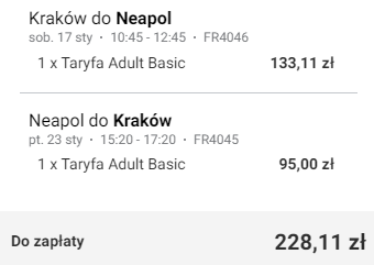Kraków (KRK) – Neapol (NAP) od ~194 PLN w dwie strony: