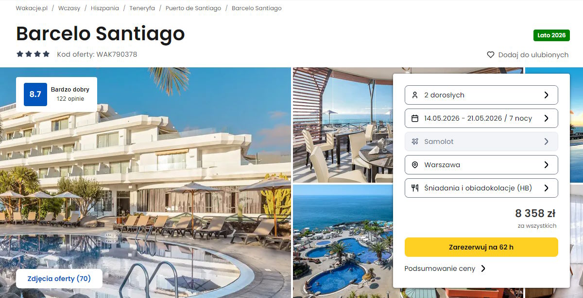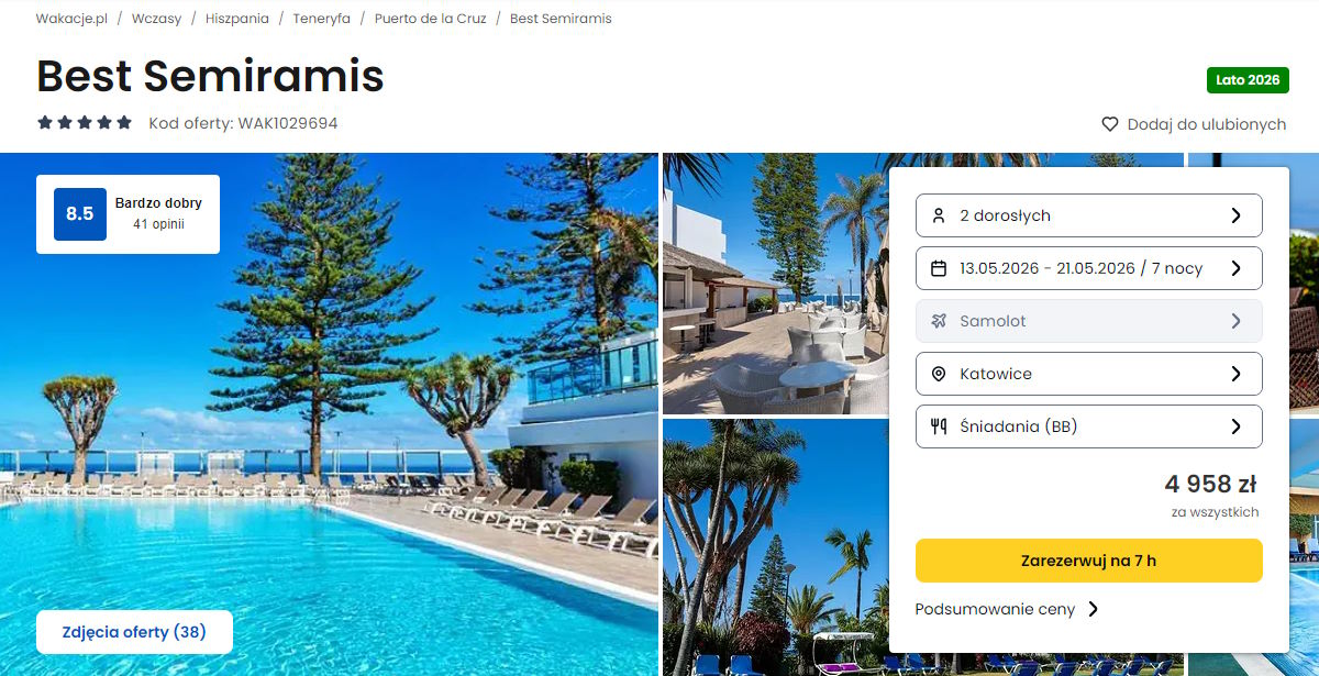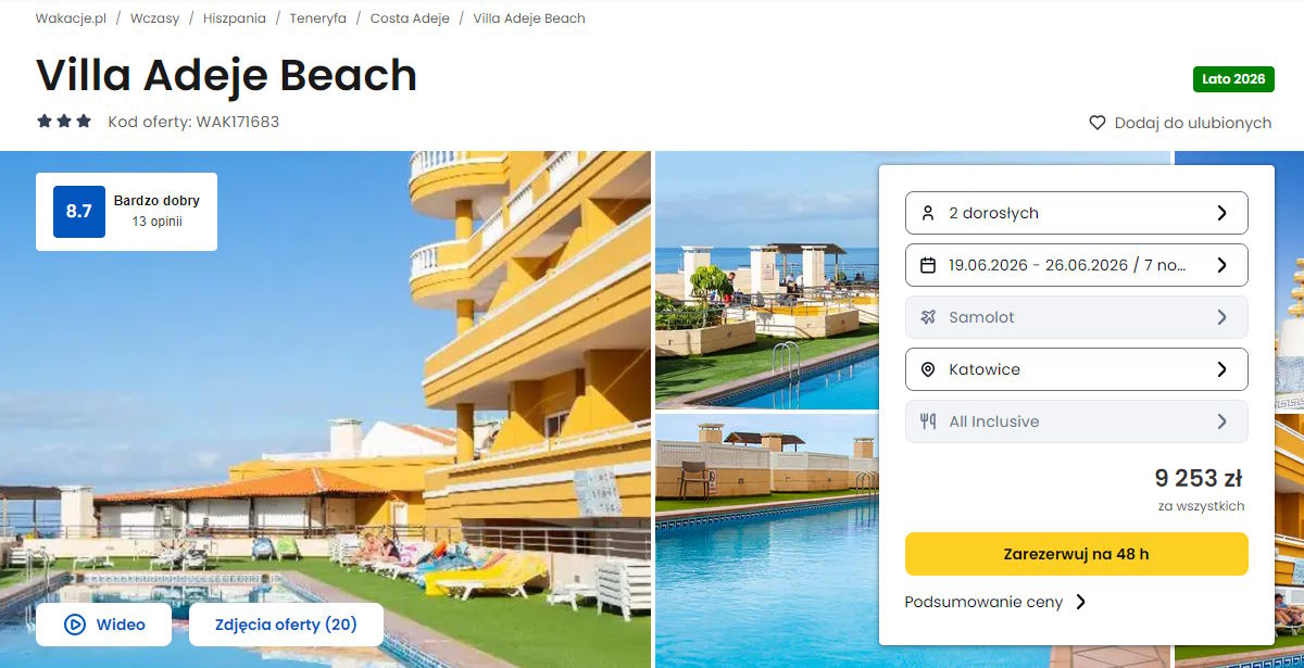 Współpracujemy z serwisem wakacje.pl i dzięki temu mogliśmy zaprezentować w/w ofertę. Treści pochodzą z serwisu wakacje.pl. Stanowią własność prawnie chronioną należącą do Wakacje.pl S.A. i/lub jej partnerów