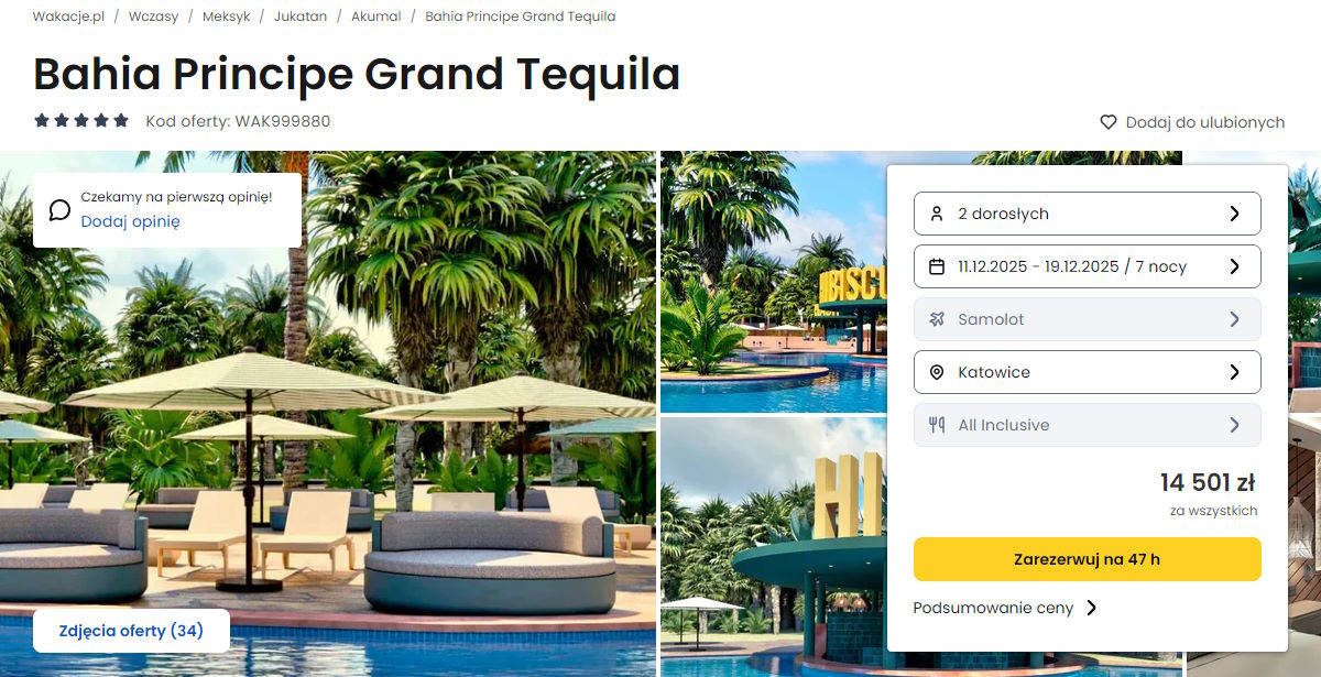 Współpracujemy z serwisem wakacje.pl i dzięki temu mogliśmy zaprezentować w/w ofertę. Treści pochodzą z serwisu wakacje.pl. Stanowią własność prawnie chronioną należącą do Wakacje.pl S.A. i/lub jej partnerów