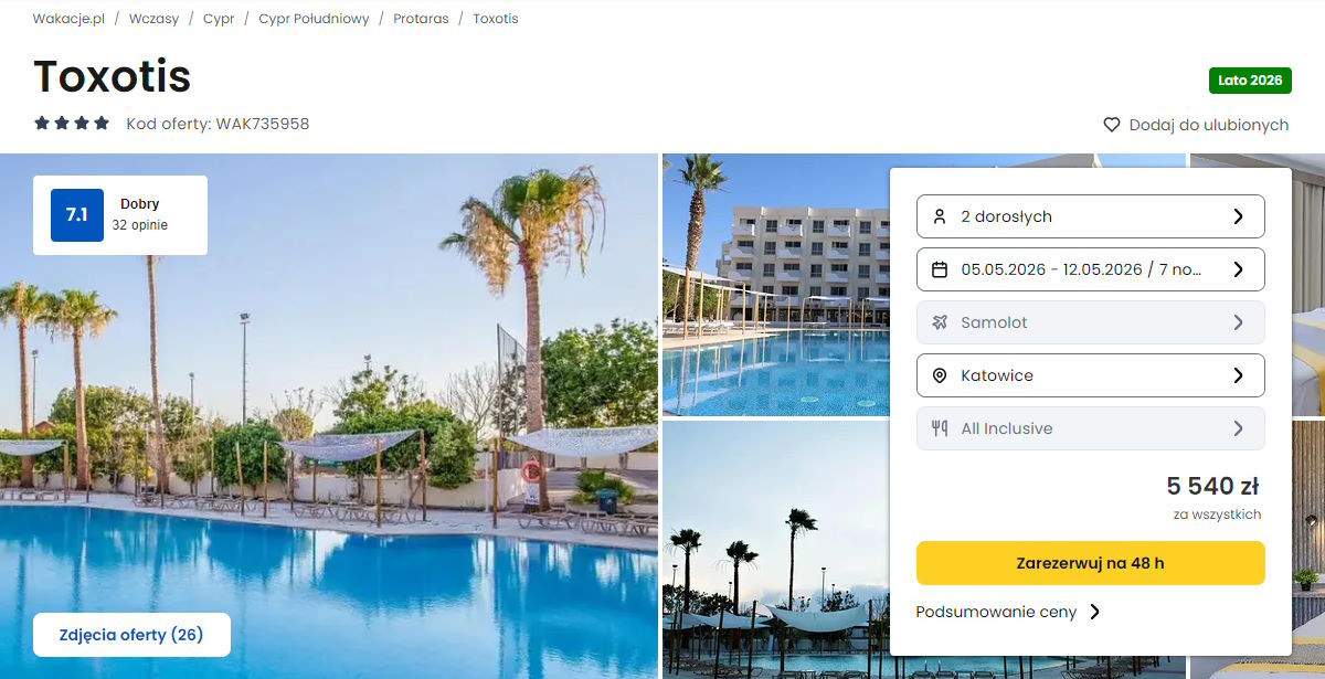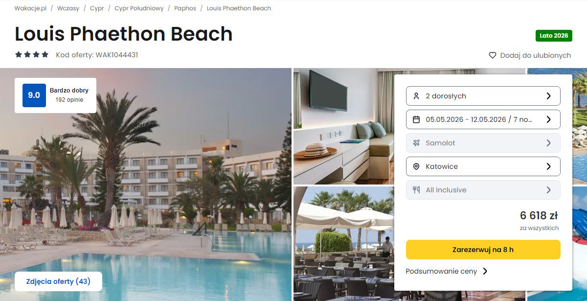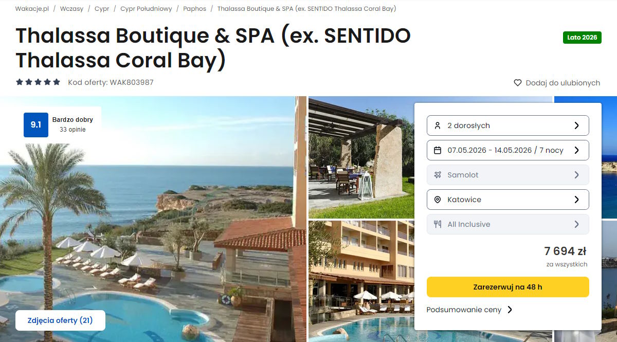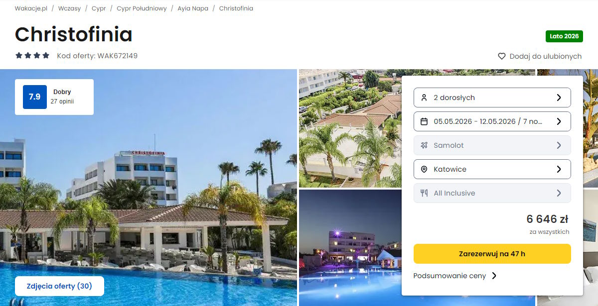 Współpracujemy z serwisem wakacje.pl i dzięki temu mogliśmy zaprezentować w/w ofertę. Treści pochodzą z serwisu wakacje.pl. Stanowią własność prawnie chronioną należącą do Wakacje.pl S.A. i/lub jej partnerów