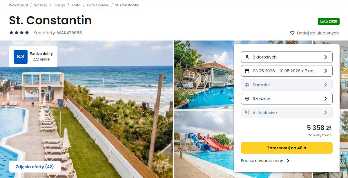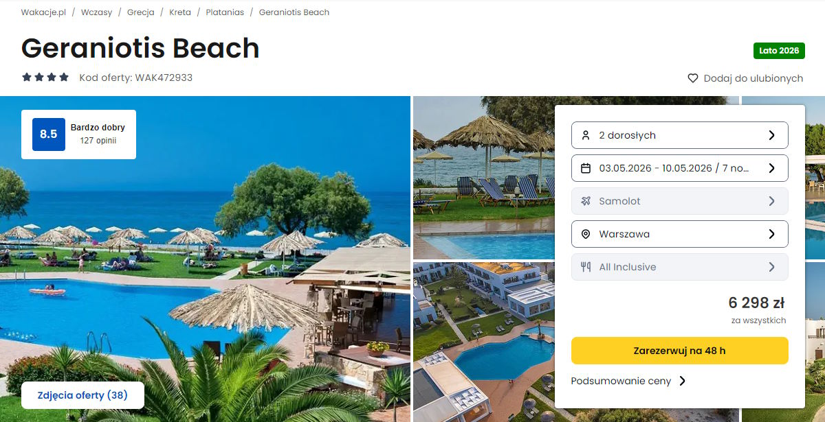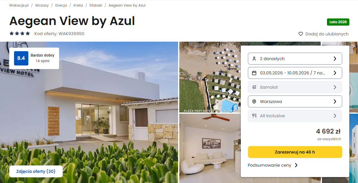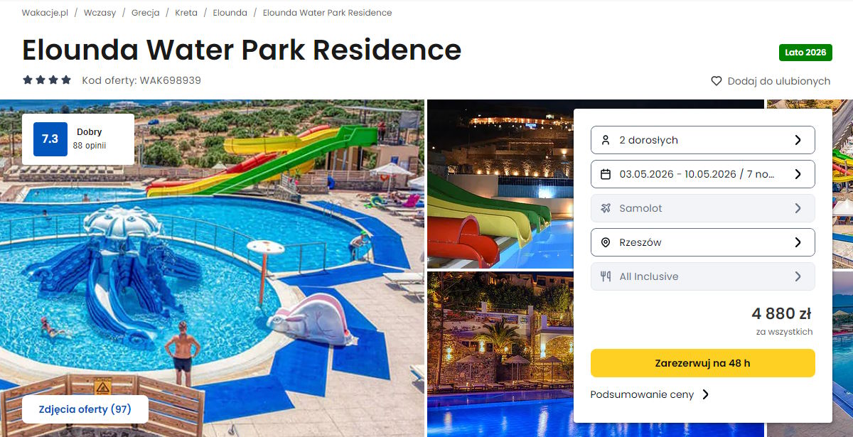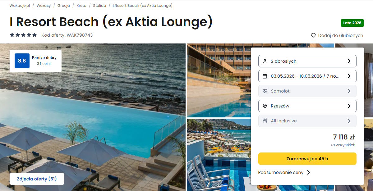 Współpracujemy z serwisem wakacje.pl i dzięki temu mogliśmy zaprezentować w/w ofertę. Treści pochodzą z serwisu wakacje.pl. Stanowią własność prawnie chronioną należącą do Wakacje.pl S.A. i/lub jej partnerów