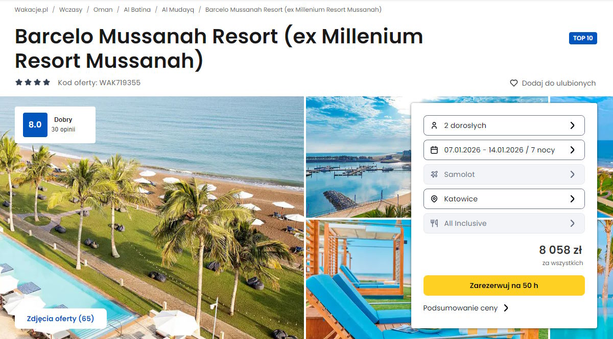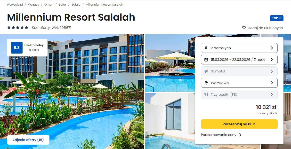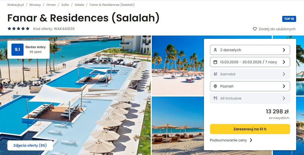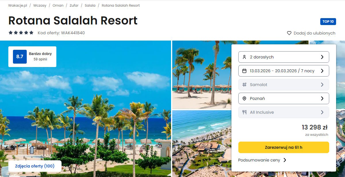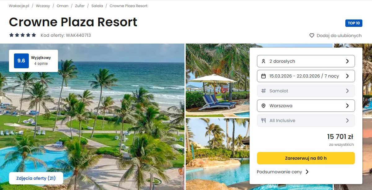 Współpracujemy z serwisem wakacje.pl i dzięki temu mogliśmy zaprezentować w/w ofertę. Treści pochodzą z serwisu wakacje.pl. Stanowią własność prawnie chronioną należącą do Wakacje.pl S.A. i/lub jej partnerów