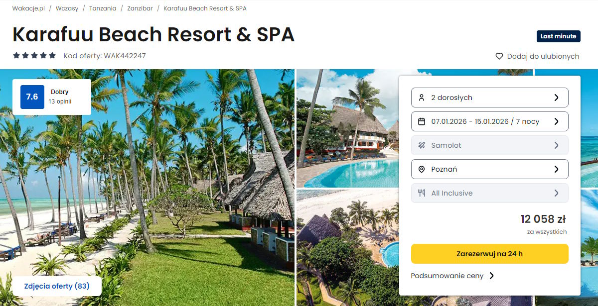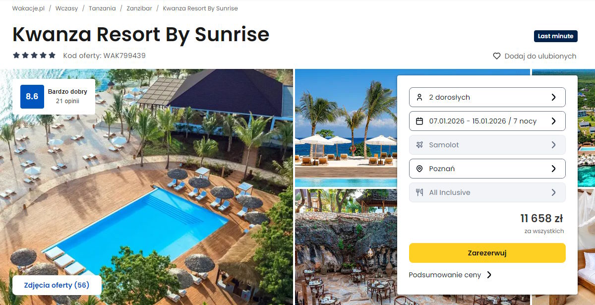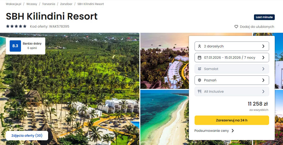 Współpracujemy z serwisem wakacje.pl i dzięki temu mogliśmy zaprezentować w/w ofertę. Treści pochodzą z serwisu wakacje.pl. Stanowią własność prawnie chronioną należącą do Wakacje.pl S.A. i/lub jej partnerów