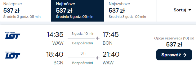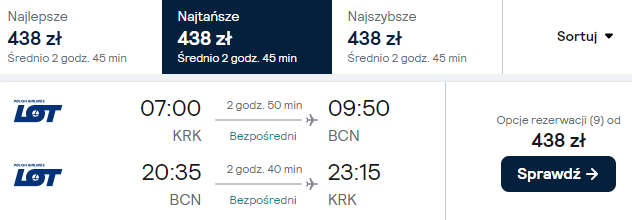- Kraków – Barcelona od 459 PLN >> PRZYKŁADOWA REZERWACJA / INNE TERMINY