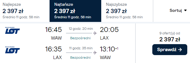 - Los Angeles od 2459 PLN >> PRZYKŁADOWA REZERWACJA / INNE TERMINY