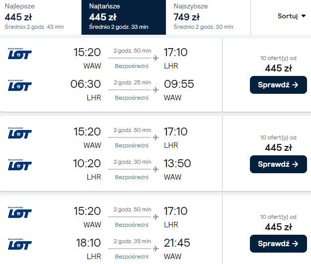 - Londyn (LHR) od 459 PLN >> PRZYKŁADOWA REZERWACJA / INNE TERMINY
