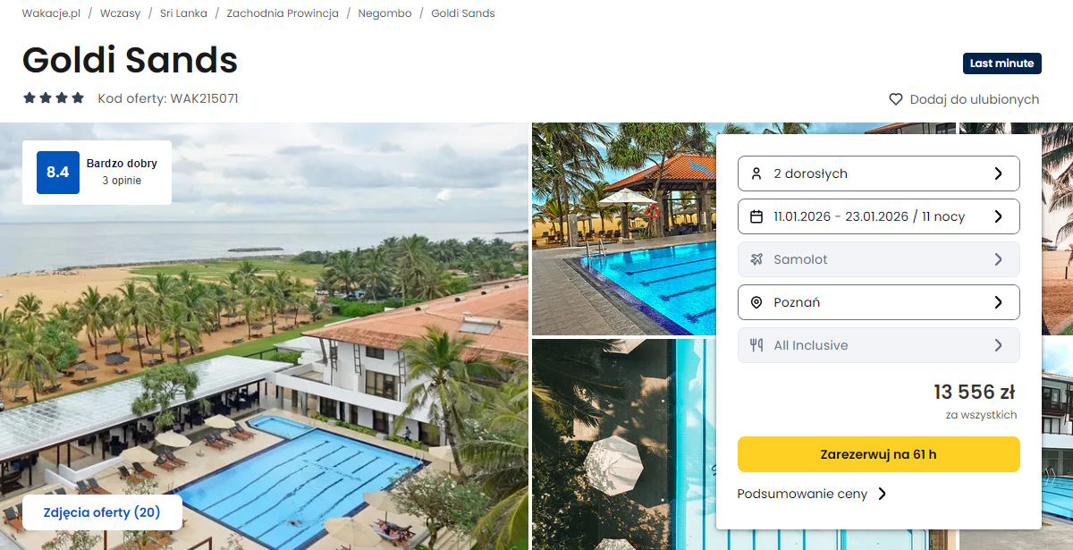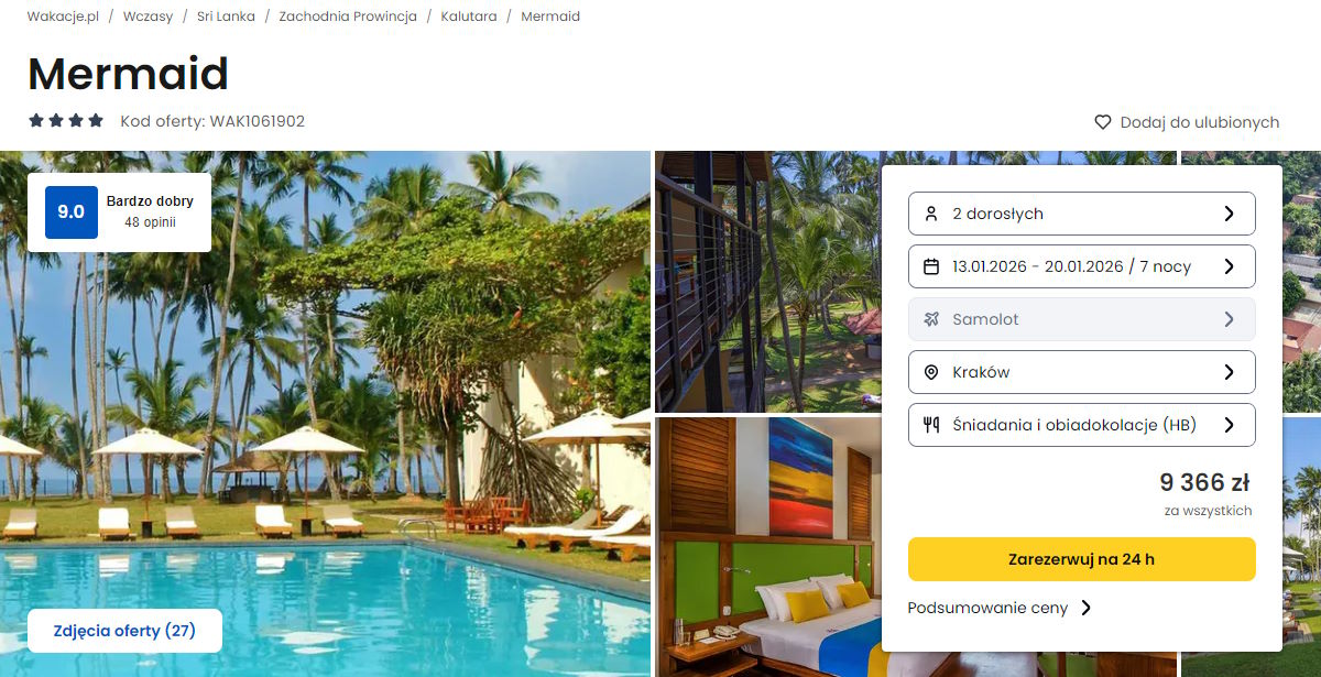 Współpracujemy z serwisem wakacje.pl i dzięki temu mogliśmy zaprezentować w/w ofertę. Treści pochodzą z serwisu wakacje.pl. Stanowią własność prawnie chronioną należącą do Wakacje.pl S.A. i/lub jej partnerów