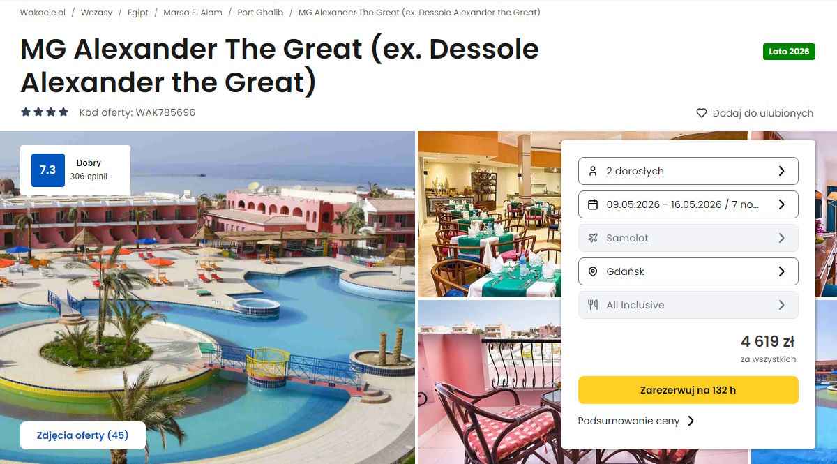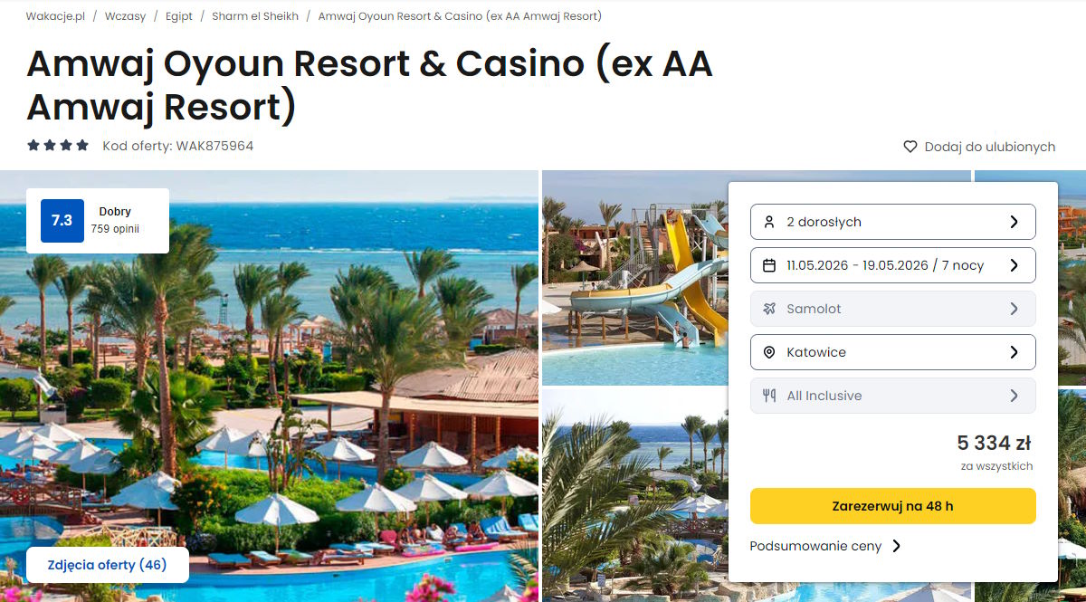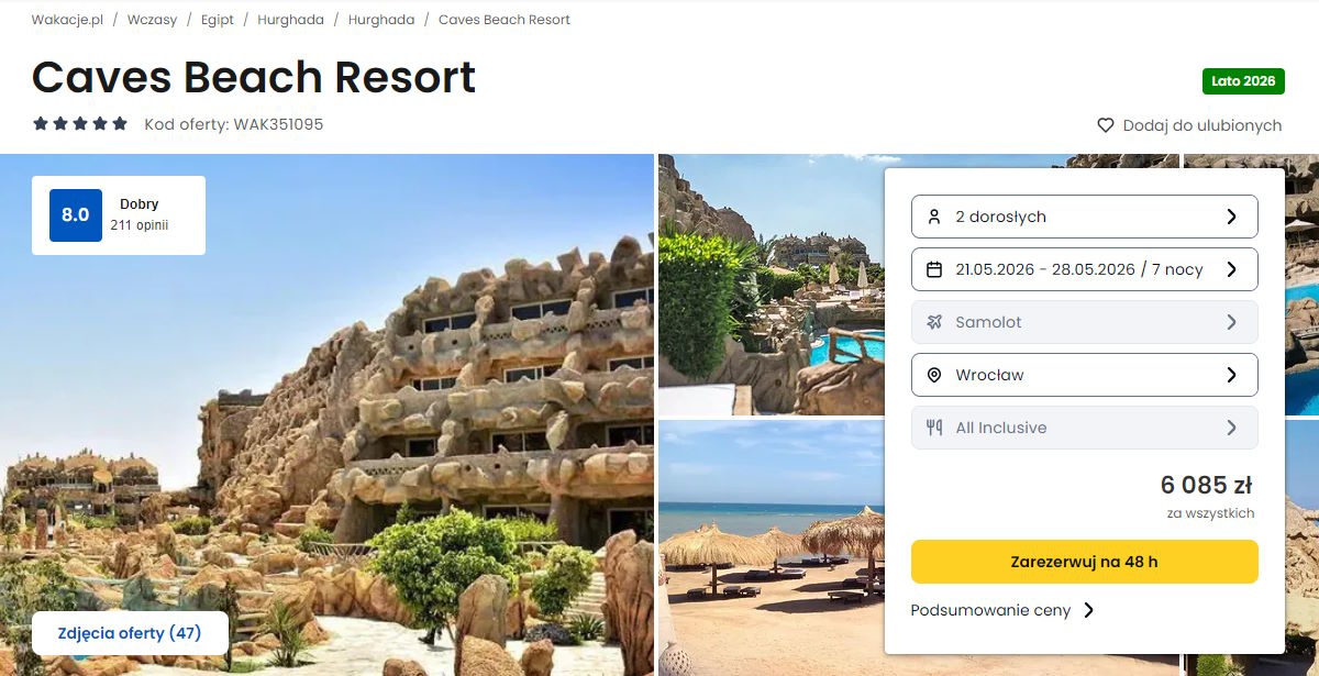 Współpracujemy z serwisem wakacje.pl i dzięki temu mogliśmy zaprezentować w/w ofertę. Treści pochodzą z serwisu wakacje.pl. Stanowią własność prawnie chronioną należącą do Wakacje.pl S.A. i/lub jej partnerów