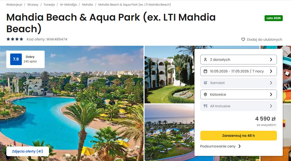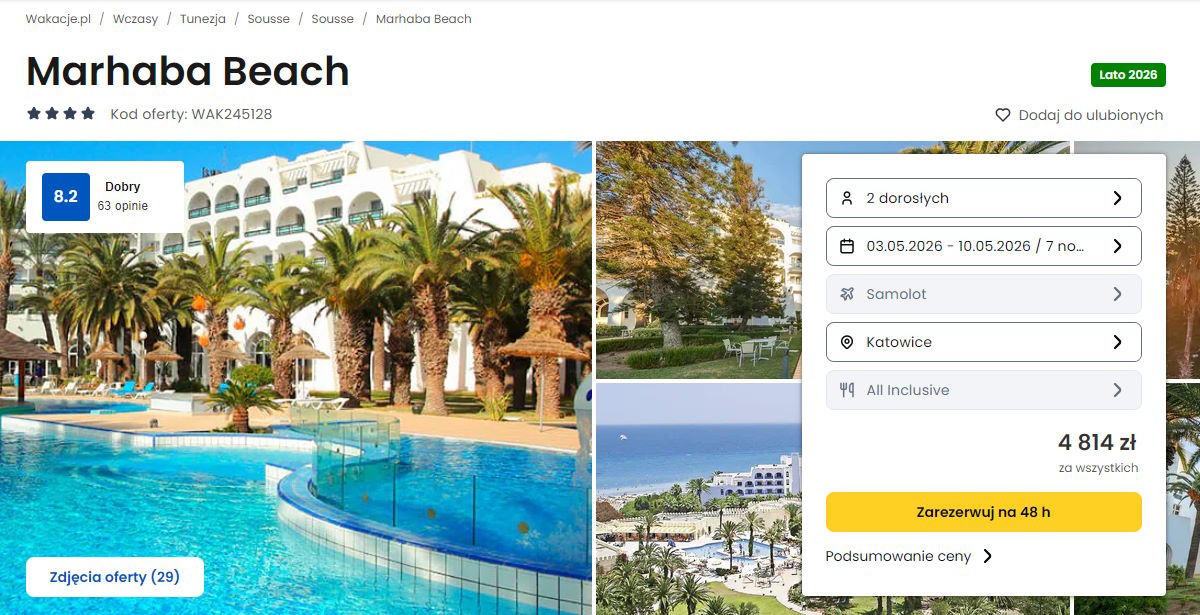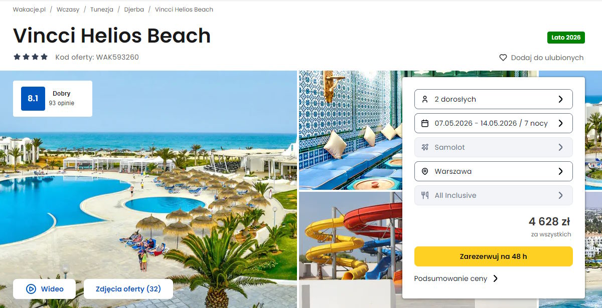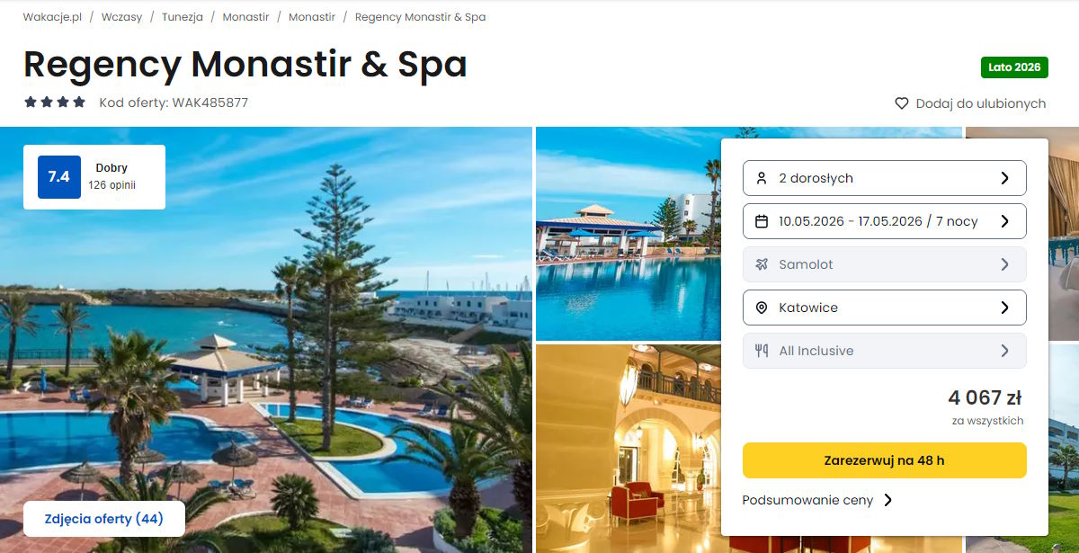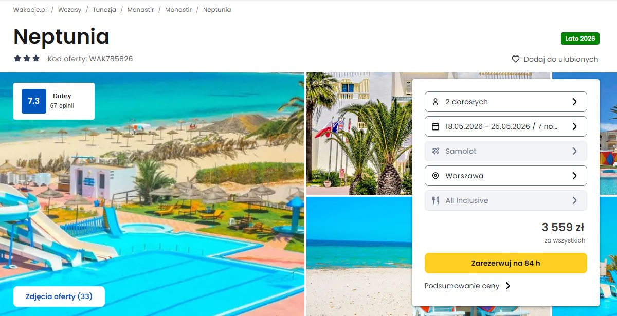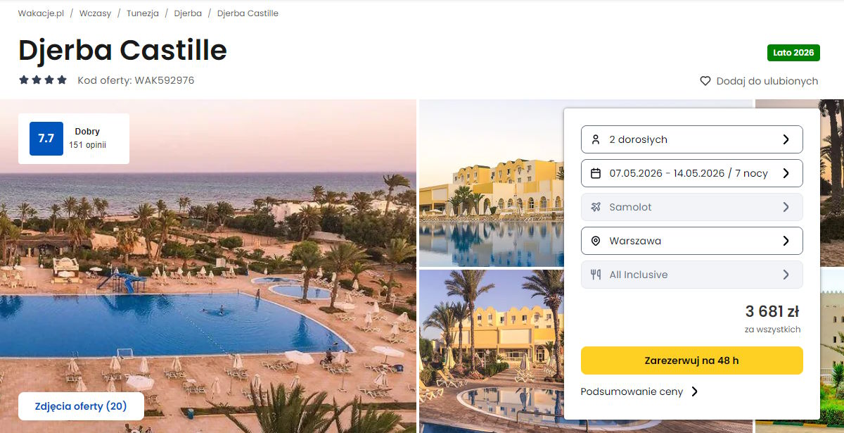 Współpracujemy z serwisem wakacje.pl i dzięki temu mogliśmy zaprezentować w/w ofertę. Treści pochodzą z serwisu wakacje.pl. Stanowią własność prawnie chronioną należącą do Wakacje.pl S.A. i/lub jej partnerów