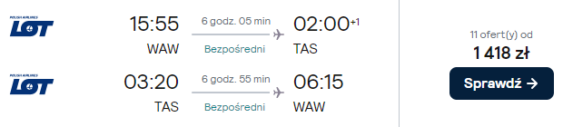 - Taszkent (TAS) od 1449 PLN >> PRZYKŁADOWA REZERWACJA / INNE TERMINY